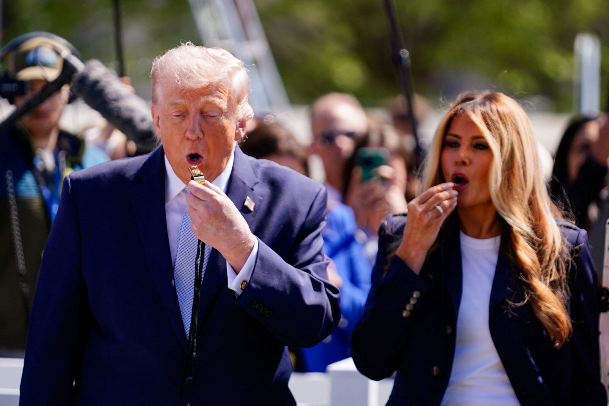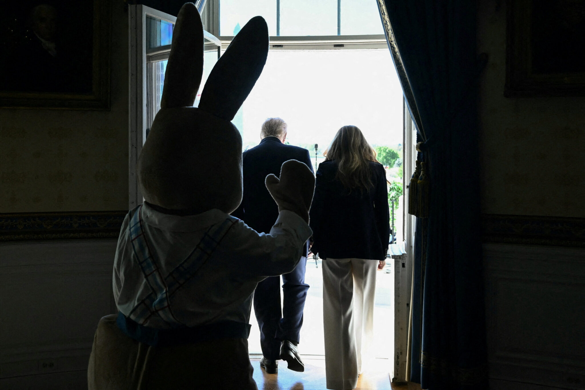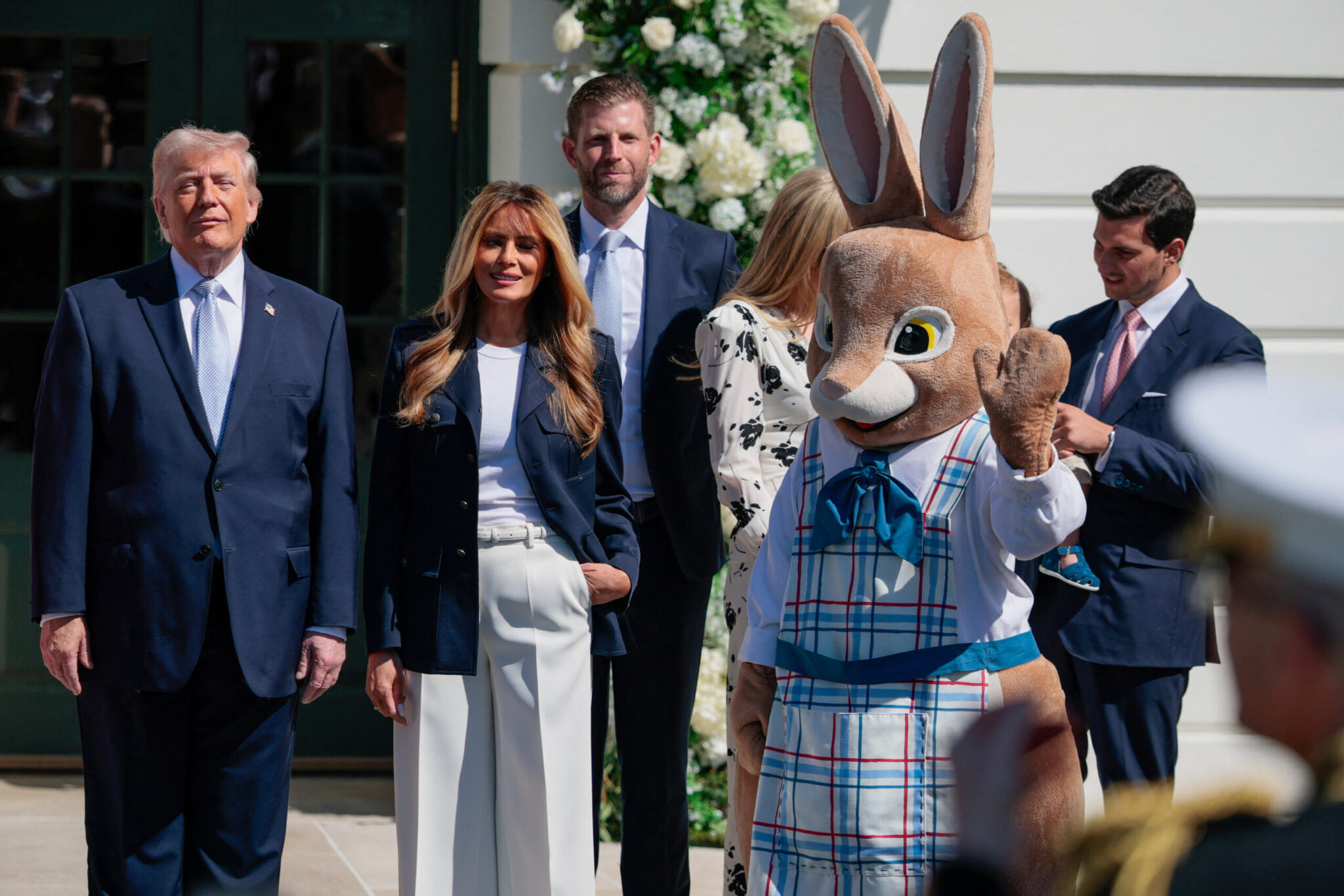 Το προεδρικό ζεύγος εμφανίστηκε στο Truman Balcony, συνοδευόμενο από το παραδοσιακό «Πασχαλινό Κουνέλι», με τον Ντόναλντ Τραμπ να αποθεώνει τη σύζυγό του, χαρακτηρίζοντάς την «σταρ του σινεμά», κάνοντας μάλιστα αναφορά και στο ντοκιμαντέρ της με τίτλο “Melania”.