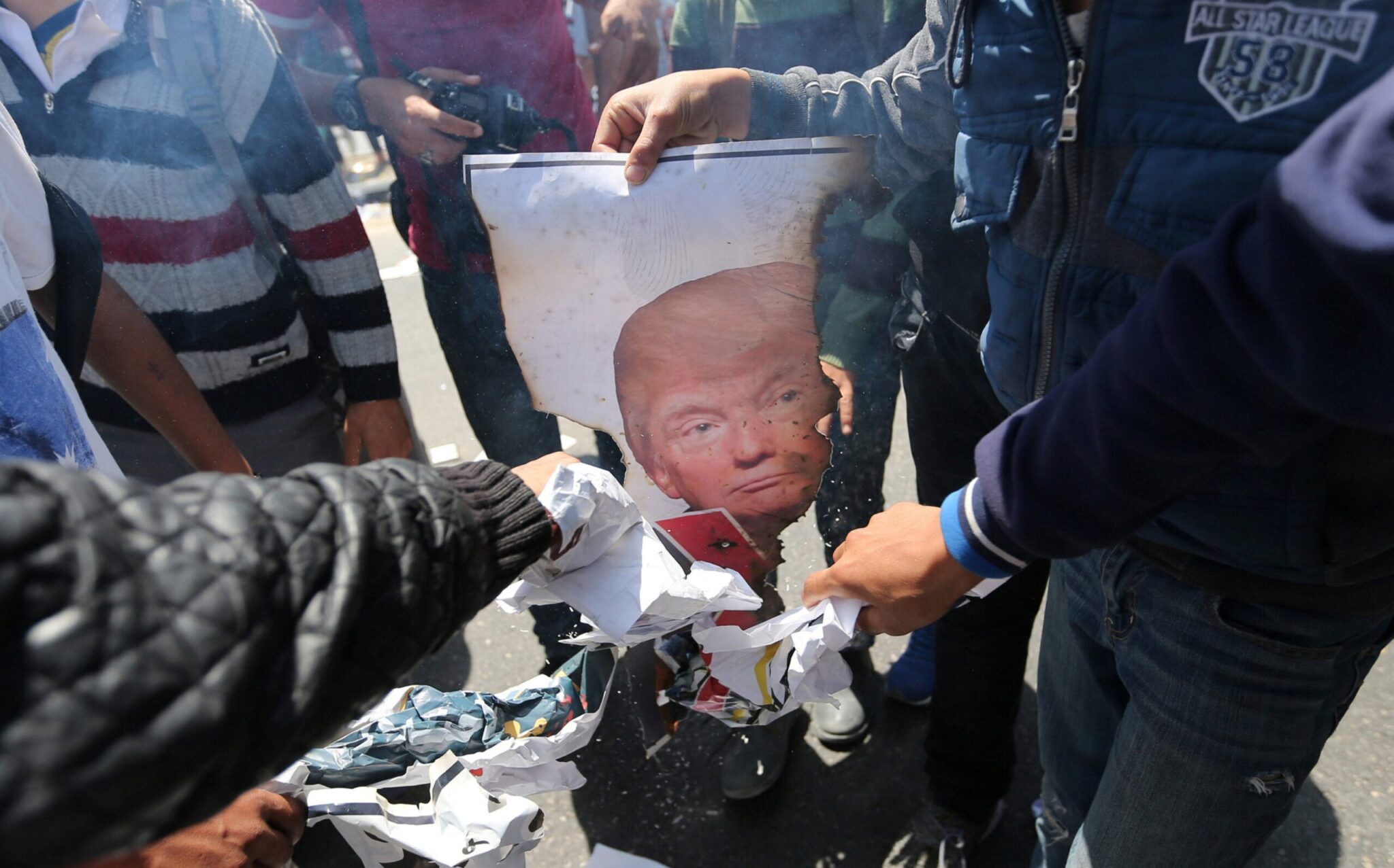 Η απόφαση του Ντόναλντ Τραμπ να αναγνωρίσει την Ιερουσαλήμ ως πρωτεύουσα του Ισραήλ έχει προκαλέσει μπαράζ αντιδράσεων από το βράδυ της Τετάρτης. Από την ώρα της ανακοίνωσης δεκάδες Παλαιστίνιοι πραγματοποιούν διαδηλώσεις στους δρόμους της Ιερουσαλήμ και της κατεχόμενης Δυτικής Όχθης. Οι διαδηλωτές καίνε αμερικανικές και ισραηλινές σημαίες αλλά και αφίσες του Αμερικανού προέδρου Ντόναλντ Τραμπ.