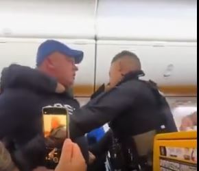 Η γαλλική αστυνομία επιβιβάστηκε στο αεροπλάνο και συνέλαβε τον πατέρα με χειροπέδες, ενώ άλλοι επιβάτες χειροκροτούσαν. Καθώς ο πατέρας πάλευε με τους αστυνομικούς, ο γιος του φαίνεται να τους ικετεύει να σταματήσουν.