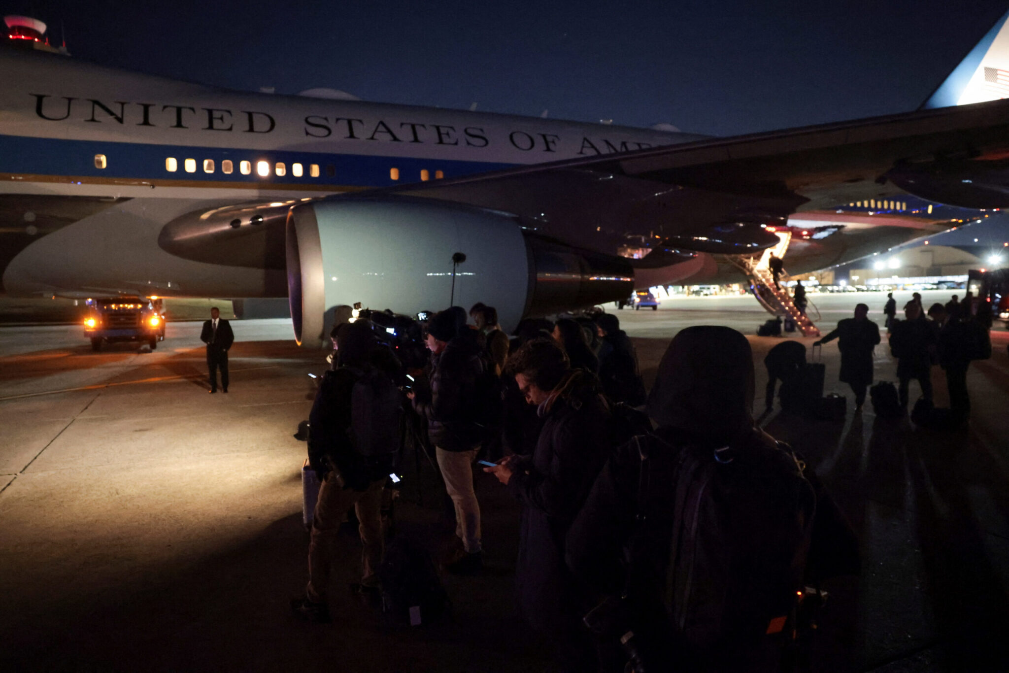 Το Air Force One–η κωδική ονομασία αυτή της αμερικανικής πολεμικής αεροπορίας αναφέρεται σε οποιοδήποτε αεροσκάφος στο οποίο επιβαίνει ο αρχηγός του κράτους–βρισκόταν εν πτήσει και επέστρεφε πριν από λίγο στην αεροπορική βάση Άντριους, κοντά στην Ουάσιγκτον, προληπτικά, εξήγησε η εκπρόσωπος του Λευκού Οίκου, η Κάρολαϊν Λέβιτ. Ο κ. Τραμπ και η συνοδεία του αναμενόταν να αλλάξουν αεροσκάφος και να αναχωρήσουν ξανά για τις ελβετικές Άλπεις.