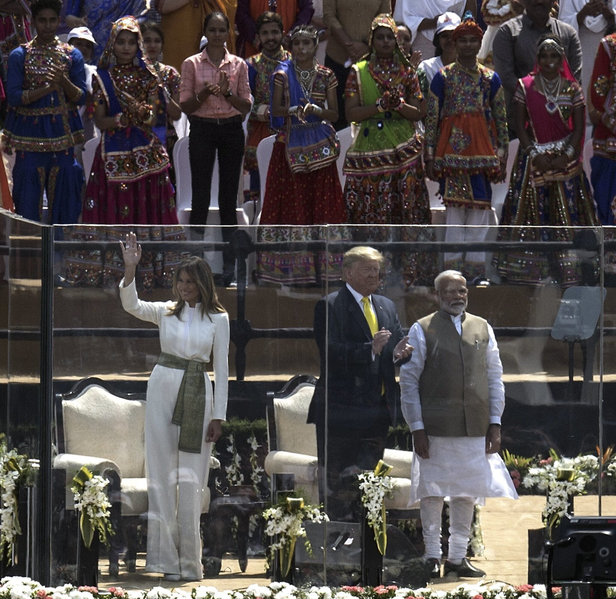Ο Αμερικανός Πρόεδρος Ντόναλντ Τραμπ με την σύζυγό του Μελάνια μπροστά στο θρυλικό Ταζ Μαχάλ.. 24 Φεβρουαρίου 2020. (Photo by Mandel NGAN / AFP) (Photo by MANDEL NGAN/AFP via Getty Images)Η Μελάνια Τραμπ κατά την άφιξη του προεδρικού ζεύγους, με στυλ έθνικ - αλλά κομψοτάτη είναι η αλήθεια. (Photo by Mandel NGAN / AFP) (Photo by MANDEL NGAN/AFP via Getty Images)Αχμενταμπάντ 24 Φεβρουαρίου 2020. Η επίσκεψη του Ντόναλντ Τραμπ στην Ινδία συνέπεσε με το καρναβάλι στην Ευρώπη...ωστόσο το πιθανότερο είναι ότι οι μάσκες με τα πρόσωπα του Αμερικανού Προέδρου και του Ινδού Πρωθυπουργού φτιάχτηκαν για διαφορετικό λόγο. (Photo by Stringer/Anadolu Agency via Getty Images)Ο Ντόναλντ Τραμπ επί σκηνής σε στάδιο κρίκετ μαζί με τον «καλό του φίλο» πρωθυπουργό της Ινδίας Ναρέντρα Μόντι. Σε αυτό το σημείο, απλώς παρατηρούμε ότι Τραμπ-Μόντι πήγανε παρέα, αλλά η Μελάνια χώρια... (Photo by Stringer/Anadolu Agency via Getty Images)Ήταν μία από τις θερμότερες υποδοχές που έχουν ποτέ επιφυλάξει στον Τραμπ εκτός ΗΠΑ. (Photo by Stringer/Anadolu Agency via Getty Images)Εδώ ποζάρει η Ιβάνκα Τραμπ με φόντο το Ταζ Μαχάλ. (Photo by Mandel NGAN / AFP) (Photo by MANDEL NGAN/AFP via Getty Images)...και πάλι το προεδρικό ζεύγος, με τον Τραμπ σε αυτό το σημείο να δείχνει ότι απολαμβάνει τον περίπατο στους κήπους του Ταζ Μαχάλ. (Photo by Mandel NGAN / AFP) (Photo by MANDEL NGAN/AFP via Getty Images)Ο Αμερικανός Πρόεδρος κοιτάζει εκτός κάδρου στη φωτογραφία. Όχι ασυνήθιστο για Τραμπ. (Photo by Mandel NGAN / AFP) (Photo by MANDEL NGAN/AFP via Getty Images)Εδώ ο φωτογράφος φαίνεται να κατέβαλε μεγάλη προσπάθεια για την ιδανική φωτογραφία, αλλά ο Τραμπ και πάλι δεν κάθισε στη θέση του... (Photo by Mandel NGAN / AFP) (Photo by MANDEL NGAN/AFP via Getty Images)"Namaste Trump" ήταν επισήμως ο τίτλος αυτού του "event" στο στάδιο Σαρντάρ Πατέλ, που ήταν κατάμεστο κατά την θριαμβευτική είσοδο Τραμπ-Μόντι στη σκηνή. (AP Photo/Alex Brandon)Ινδουιστές ιερείς προσεύχονται για τον Ντόναλντ Τραμπ - Ο Θεός να τον φωτίσει! (AP Photo/Manish Swarup)Τα πλήθη συγκεντρωμένα και στους δρόμους καθ'οδόν για το μεγαλειώδες "Namaste Trump". (AP Photo/Alex Brandon)Eδώ η Ιβάνκα Τραμπ σε ρόλο φωτογράφου(!), ενώ ποζάρει ο σύμβουλος Εθνικής Ασφάλειας των ΗΠΑ Ρόμπερτ 'Ο Μπράιαν. (AP Photo/Alex Brandon)Και πάλι τα πλήθη - εκτός σταδίου - πριν απο το Namaste για τον Ντόναλντ Τραμπ. (AP Photo/Alex Brandon)Υπήρξαν πάντως και εκείνοι που δεν χάρηκαν, όπως οι ακτιβιστές της φωτογραφίας που έκαψαν το προεδρικό σκίτσο. (AP Photo/Bikas Das)Το 'Namaste Trump' έλαβε χώρα σε ένα χώρο υψηλού συμβολισμού για την Ινδία: Σε ένα γήπεδρο κρίκετ - θυμίζουμε ότι αυτό είναι το εθνικό σπορ για τους Ινδούς, που έσπευσαν να στηρίξουν τον Ντόναλντ Τραμπ σε ένα προεκλογικό έτος για τον ίδιο... (AP Photo/Aijaz Rahi)Το 'Namaste Trump' έλαβε χώρα σε ένα χώρο υψηλού συμβολισμού για την Ινδία: Σε ένα κατάμεστο γήπεδρο κρίκετ - θυμίζουμε ότι αυτό είναι το εθνικό σπορ για τους Ινδούς, που έσπευσαν να στηρίξουν τον Ντόναλντ Τραμπ σε ένα προεκλογικό έτος για τον ίδιο...(AP Photo/Ajit Solanki)