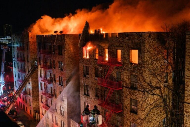 Mια πολυκατοικία στο Μπρονξ της Νέας Υόρκης έχει τυλιχθεί στις φλόγες καίγοντας τους τελευταίους ορόφους, με τους ενοίκους να κρέμονται από τα παράθυρα για να γλιτώσουν από τους καπνούς μέχρι να τους διασώσουν τα σωστικά συνεργεία.