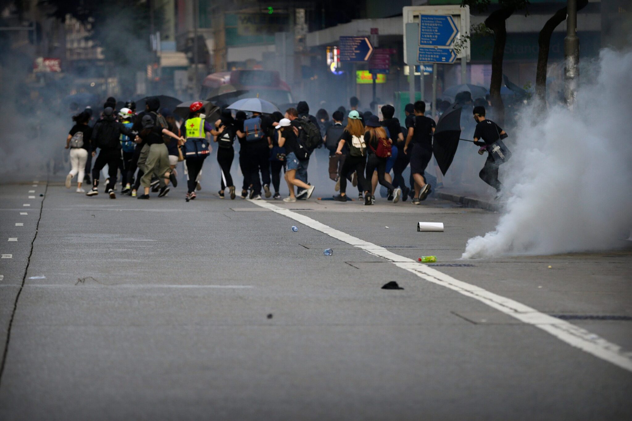 Λίγο αργότερα έγινε γνωστό ότι η αστυνομία έριξε δακρυγόνα για να διαλύσει συγκεντρώσεις διαδηλωτών και σε άλλα σημεία του Χονγκ Κονγκ, κοντά στο αρχηγείο της αστυνομίας στην Γουάν Τσάι όπως και στο κέντρο της πόλης.