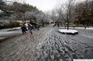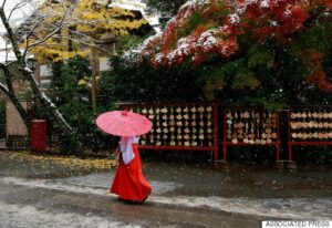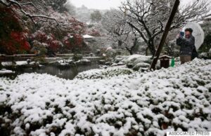 Σε συνθήκες τσουχτερού κρύου με θερμοκρασίες που πλησίαζαν το μηδέν, ξεκίνησε να χιονίζει τα ξημερώματα, δηλαδή περίπου 40 μέρες νωρίτερα απ’ ό,τι συνήθως, μετέδωσε το ειδησεογραφικό πρακτορείο Kyodo.
