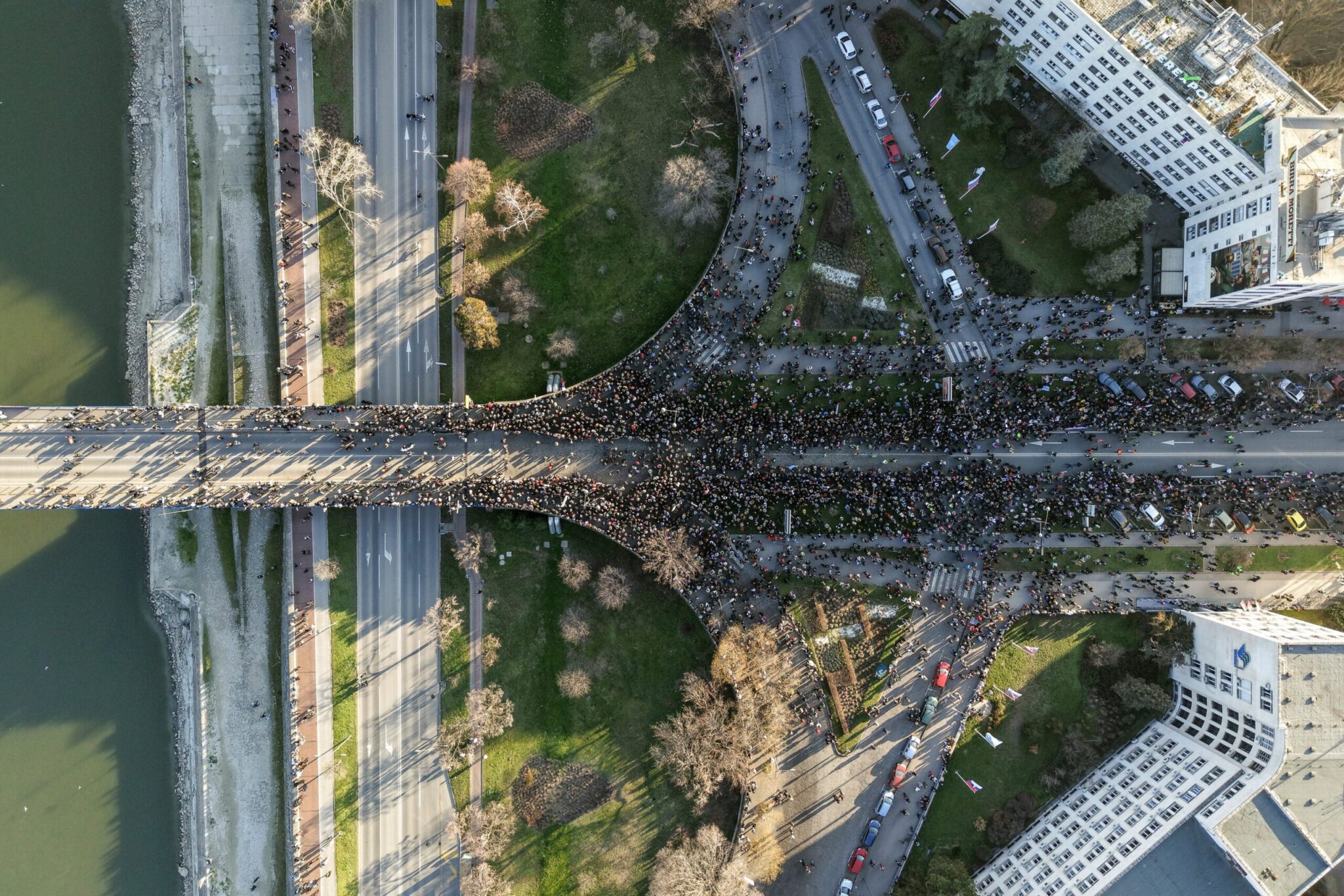 Από τις πρώτες πρωινές ώρες και μέχρι νωρίς το απόγευμα σε όλες τις εισόδους του Νόβι Σαντ είχαν σχηματιστεί ουρές χιλιομέτρων από οχήματα που έφταναν απ όλες τις γωνιές της χώρας. Πολλοί διαδηλωτές έφταναν οργανωμένα, όπως οι μοτοσικλετιστές, οι ταξιτζήδες, οι αγρότες με τρακτέρ, οι απόστρατοι των ειδικών δυνάμεων, οι βετεράνοι πολέμου… Οργανωμένα έφτασαν χθες βράδυ και οι φοιτητές από το Βελιγράδι πραγματοποιώντας πορεία 95 χιλιομέτρων.