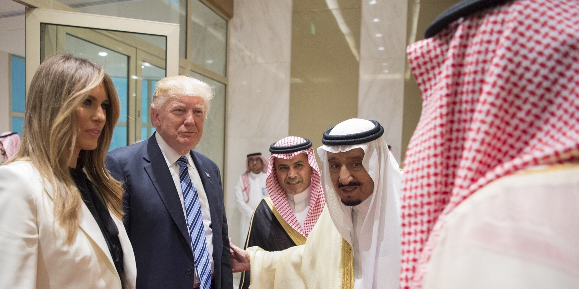 Μετά την υποδοχή του στο Ριάντ από την Βασιλική οικογένεια της Σαουδικής Αραβίας – που μάλλον δεν είχε ακούσει, δεν είχε δει τις τότε δηλώσεις – ο Πρόεδρος Τραμπ συμμετείχε σε παραδοσιακή τελετή, υποκλίθηκε στον Σαουδάραβα βασιλιά ενώ είχε φροντίσει να πετάξει από το προεδρικό του αεροσκάφος ό,τι δήλωση και σκέψη του αφορά στο «Αναθεωρητικό Ισλάμ» πριν προσγειωθεί στην χώρα – «μεγαλύτερο χρηματοδότη της τρομοκρατίας», όπως είχε δηλώσει.
