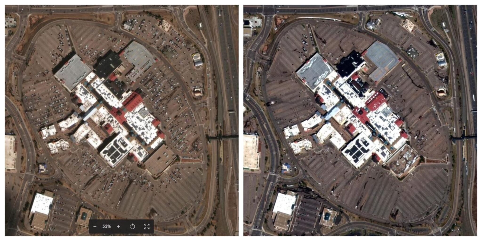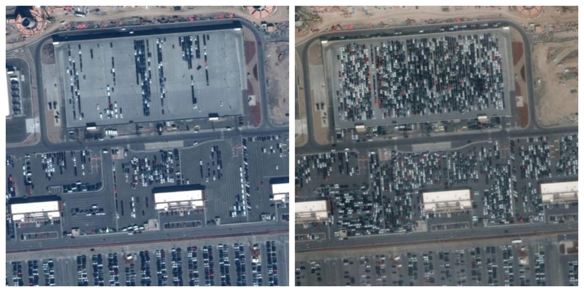 Αριστερά: Πάρκινγκ εμπορικού κέντρου στο Κολοράντο, γεμάτο αυτοκίνητα (10 Μαρτίου) Δεξιά: Το ίδιο πάρκινγκ του κλειστού πλέον εμπορικού είναι απελπιστικά άδειο (22 Μαρτίου)Αριστερά: Οι τελευταίοι επισκέπτες αχνοφαίνονται στο Κολοσσαίο της Ρώμης (21 Φεβρουαρίου) Δεξιά: Ενα μήνα μετά δεν υπάρχει ψυχή (18 Μαρτίου)Ιδια αντίθεση και στην πλατεία του Αγίου Πέτρου, στην ιταλική πρωτεύουσα. Οι διαφορές ανάμεσα στο πριν (αριστερά, 21 Φεβρουαρίου) και το μετά (δεξιά, 18 Μαρτίου) είναι εμφανείς.Ανάλογη είναι η εικόνα και στο περίφημο Τάζ Μαχάλ της Ινδίας, με τους επισκέπτες να διακρίνονται στις 10 Φεβρουαρίου (αριστερά) αλλά να έχουν «εξαφανιστεί» στις 18 Μαρτίου (δεξιά)Αριστερά: Κόμβος σε αυτοκινητόδρομο του Λος Αντζελες με έντονη κυκλοφορία οχημάτων (28 Ιανουαρίου) Δεξιά: Τα διερχόμενα οχήματα είναι μετρημένα στα δάκτυλα (22 Μαρτίου)Αριστερά: Νοσοκομείο στη Γουχάν χτίστηκε αποκλειστικά για ασθενείς με κορονοϊό μέσα σε 10 ημέρες (21 Φεβρουαρίου) Δεξιά: Ιδού πως ήταν το συγκεκριμένο σημείο πριν την κατασκευή - εξπρές (10 Φεβρουαρίου)Αριστερά: Τα περισσότερα από τα ενοικιαζόμενα αυτοκίνητα στο Διεθνές Αεροδρόμιο του Σολτ Λέικ Σίτι έχουν διατεθεί σε πελάτες (5 Μαρτίου) Δεξιά: Το πάρκινγκ έχει γεμίσει ασφυκτικά από τα οχήματα που επέστρεψαν και δεν ξανανοικιάστηκαν (16 Μαρτίου)Αριστερά: Το πάρκινγκ του Διεθνούς Αεροδρομίου του Ντένβερ φιλοξενεί εκατοντάδες αυτοκίνητα επισκεπτών και ταξιδιωτών (7 Ματρίου) Δεξιά: Κι όμως, αυτό είναι το ίδιο πάρκινγκ δύο ενδομάδες αργότερα (23 Μαρτίου)Αριστερά: Πλήθος προσκυνητών στη Μέκκα (25 Ιανουαρίου) Δεξιά: Εικόνα πρωτόγνωρη με την Μέκκα άδεια (10 Μαρτίου)Αριστερά: Η Βενετία σφύζει από ζωή και επισκέπτες (20 Οκτωβρίου) Δεξιά: Η κίνηση στην πόλη έχει μειωθεί δραματικά (18 Μαρτίου)Αριστερά: Η διάσημη Κοπακαμπάνα Ρίο ντε Τζανέιρο με κόσμο (28 Απριλίου 2018) Δεξιά: Η Κοπακαμπάνα ερημωμένη (23 Μαρτίου)Αριστερά: Το Walt Disney World Resort υπό κανονικές συνθήκες (6 Ιανουαρίου) Δεξιά: Το Walt Disney World Resort την εποχή του κορονοϊού (18 Μαρτίου)