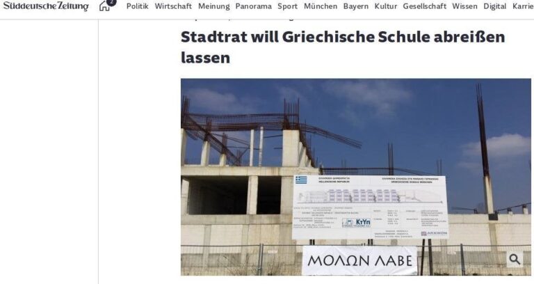 Η γερμανική πλευρά προτίθεται να τερματίσει τη διαμάχη μεταξύ του Δήμου Μονάχου και του ελληνικού δημοσίου που αφορά την ανέγερση νέου ελληνικού σχολείο στην βαυαρική πρωτεύουσα, γράφει η Süddeutsche Zeitung και σημειώνει ότι «το δημοτικό συμβούλιο επιδιώκει την κατεδάφιση του υπό ανέγερση ελληνικού σχολείου».