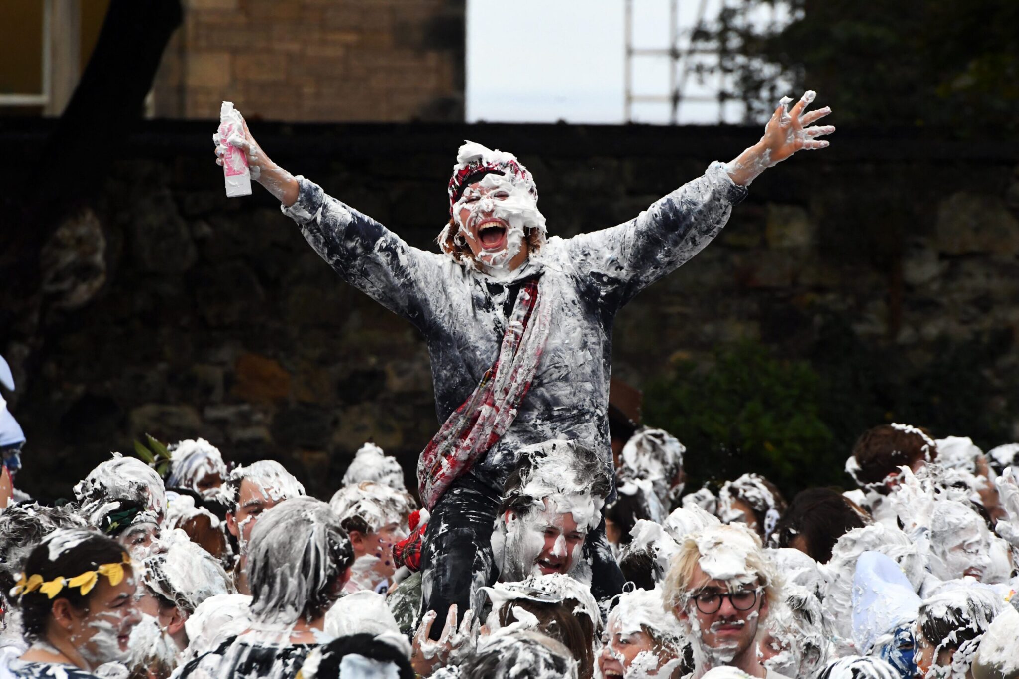 Διαδηλωτής «πετάει» φωτιά από το στόμα κατά τη διάρκεια διαμαρτυρίας για την δεύτερη επέτειο της εξέγερσης κατά της κοινωνικής ανισότητας, στο Σαντιάγο της Χιλής, στις 18 Οκτωβρίου. MARTIN BERNETTI/AFP via Getty ImagesΣαμαρείτες κρατούν το ειλητάριο της Τορά κατά τη διάρκεια παραδοσιακού προσκυνήματος για την γιορτή του Σουκότ, ή τη γιορτή των Σκηνών, στην κορυφή του όρους Γεριζίμ, κοντά στη βόρεια πόλη Ναμπλούς στην κατεχόμενη από το Ισραήλ Δυτική Όχθη, στις 20 Οκτωβρίου.EMMANUEL DUNAND/AFP via Getty ImagesΤα λείψανα μέλους της κοινότητας των Μάγια του Πομούτς κατά τη διάρκεια τελετής, στην οποία συγγενείς καθαρίζουν τα μέρη του σώματος των αγαπημένων τους, πριν από τους εορτασμούς της Ημέρας των Νεκρών στην Πολιτεία Καμπέτσε του Μεξικό, στις 19 Οκτωβρίου.LUIS PEREZ/AFP via Getty ImagesΠρωτοετείς φοιτητές του Πανεπιστημίου Σεντ Άντριους κατά τον ετήσιο εορτασμό με αφρό ξυρίσματος, « Raisin Monday», στις 18 Οκτωβρίου. Πρόκειται για έθιμο με το οποίο οι παλαιότεροι φοιτητές καλωσορίζουν τους νεώτερους.ANDY BUCHANAN/AFP via Getty ImagesΑθλήτρια κατά την προπόνηση για το Παγκοσμίο Κυπέλλο Αλπικού Σκι Γυναικών FIS στο Σόλντεν της Αυστρίας, στις 22 Οκτωβρίου. JOE KLAMAR/AFP via Getty ImagesΟ ηθοποιός Τζόνι Ντεπ λίγο πριν την παράδοση μαθήματος στο Auditorium della Conciliazione στο 16ο Φεστιβάλ Κινηματογράφου της Ρώμης, στις 17 Οκτωβρίου.TIZIANA FABI/AFP via Getty ImagesΕνας πεζός με το ποδήλατο του ενώ περνάει μπροστά από το έργο του Νορβηγού καλλιτέχνη Α Κ Ντόβεν στην παραλία της πόλης Φόλκστοουν, στην νοτιονατολική Αγγλία. Το έργο έχει τίτλο «Out of Tune» (Ξεκούρδιστο). Πρόκειται για μία καμπάνα του 16ου αιώνα από την εκκλησία Σκράπτοφ της κομητείας του Λέστερσαϊρ να κρέμεται ανάμεσα σε δύο στύλους.GLYN KIRK/AFP via Getty ImagesΜέλη του προσωπικού απολυμαίνουν τους κρίκους, ως προληπτικό μέτρο κατά του κορωνοϊού, κατά τη διάρκεια του Παγκόσμιου Πρωταθλήματος Ενόργανης Γυμναστικής στην πόλη Κιτακιούσου της Ιαπωνίας, στις 20 Οκτωβρίου.PHILIP FONG/AFP via Getty ImagesΕπισκέπτες ταίζουν με καρότα μια καμηλοπάρδαλη στον ζωολογικό κήπο Ζενπάλ στο Μοντερέι του Μεξικό, στις 21 Οκτωβρίου.Daniel Becerril via ReutersΟ κουόρτερμπακ της ποδοσφαιρικής ομάδας Μπάφαλο Μπιλς, Τζος Άλεν ανακόπτεται λίγο πριν την γραμμή του γκολ από τον αμυντικό των Τενεσί Τάιτανς, Αμάνι Χούκερ, σε αγώνα του NFL, στις 18 Οκτωβρίου.Mark Zaleski/APΗ ρόδα στο λούνα παρκ με θέα το ηλιοβασίλεμα στην Βαγδάτη, στις 21 Οκτωβρίου.Hadi Mizban/AP