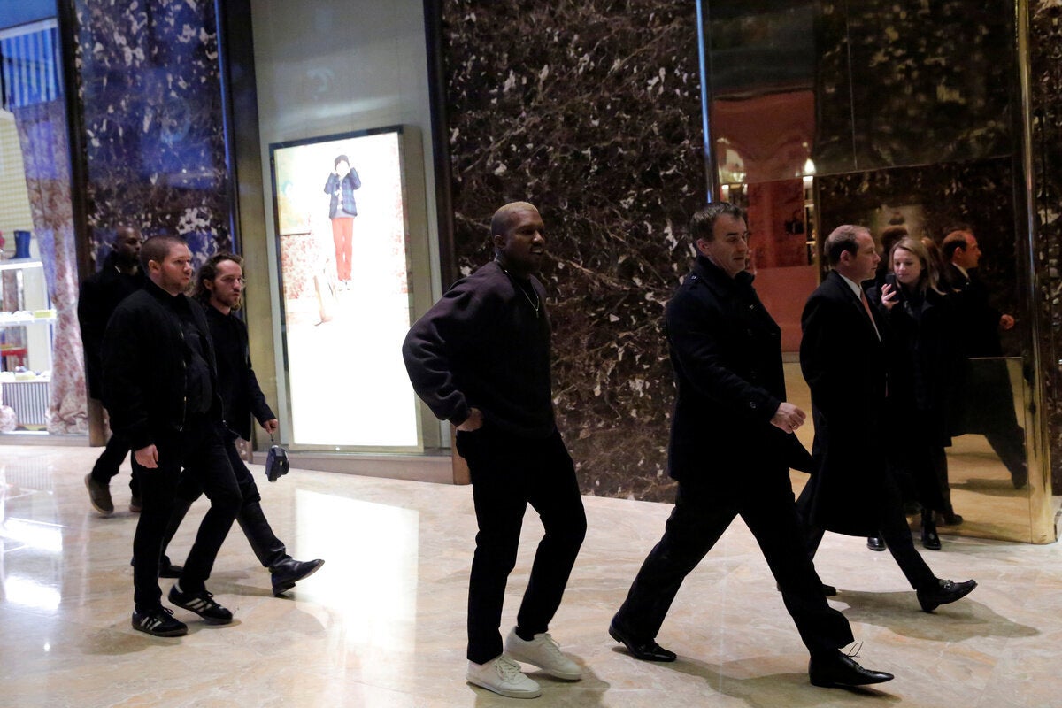 O Trump εμφανίστηκε παρέα με τον Kanye West έξω από του ανελκυστήρες του Πύργου Trump. O νεοεκλεγείς πρόεδρος των ΗΠΑ είπε στον ράπερ: «Εμείς οι δύο είμαστε φίλοι εδώ και αρκετό καιρό».
