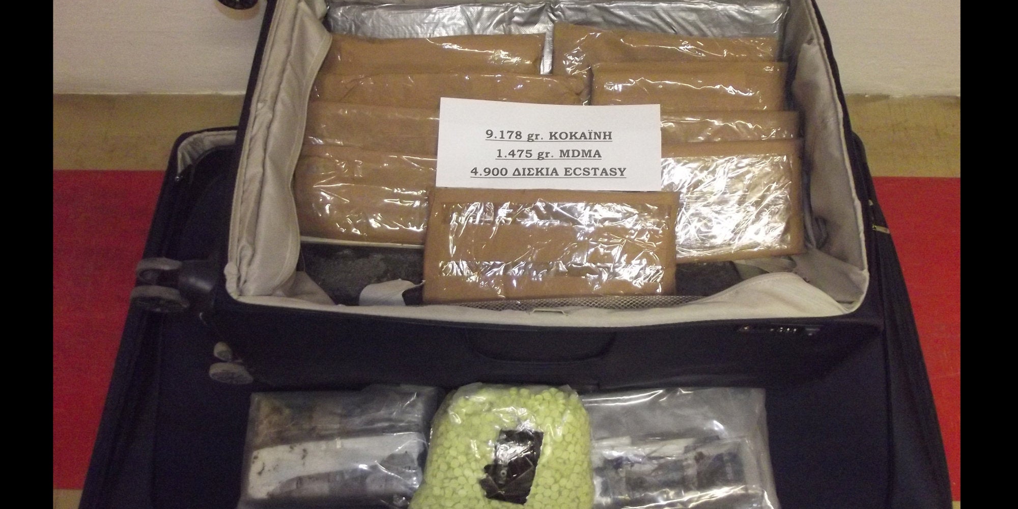 Συνολικά κατασχέθηκαν μεταξύ άλλων: Κοκαΐνη συνολικού βάρους 9 κιλών και 178 γραμμαρίων, μεθαμφεταμίνη βάρους 1 κιλού και 475 γραμμαρίων και 4.900 χάπια Ecstasy.