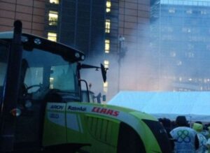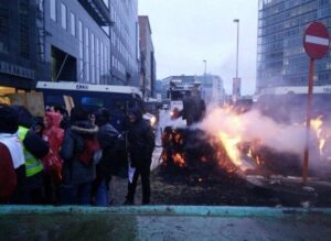 Ογκώδες συλλαλητήριο πραγματοποιήθηκε στην πρωτεύουσα του Βελγίου από εκατοντάδες αγρότες οι οποίοι άρχισαν να περικλυκλώνουν με τα τρακτέρ τους από τα ξημερώματα της Παρασκευής τα κτίρια της Ευρωπαϊκής Επιτροπής και του Ευρωπαϊκού Συμβουλίου και να πετούν τα προϊόντα τους στο δρόμο.