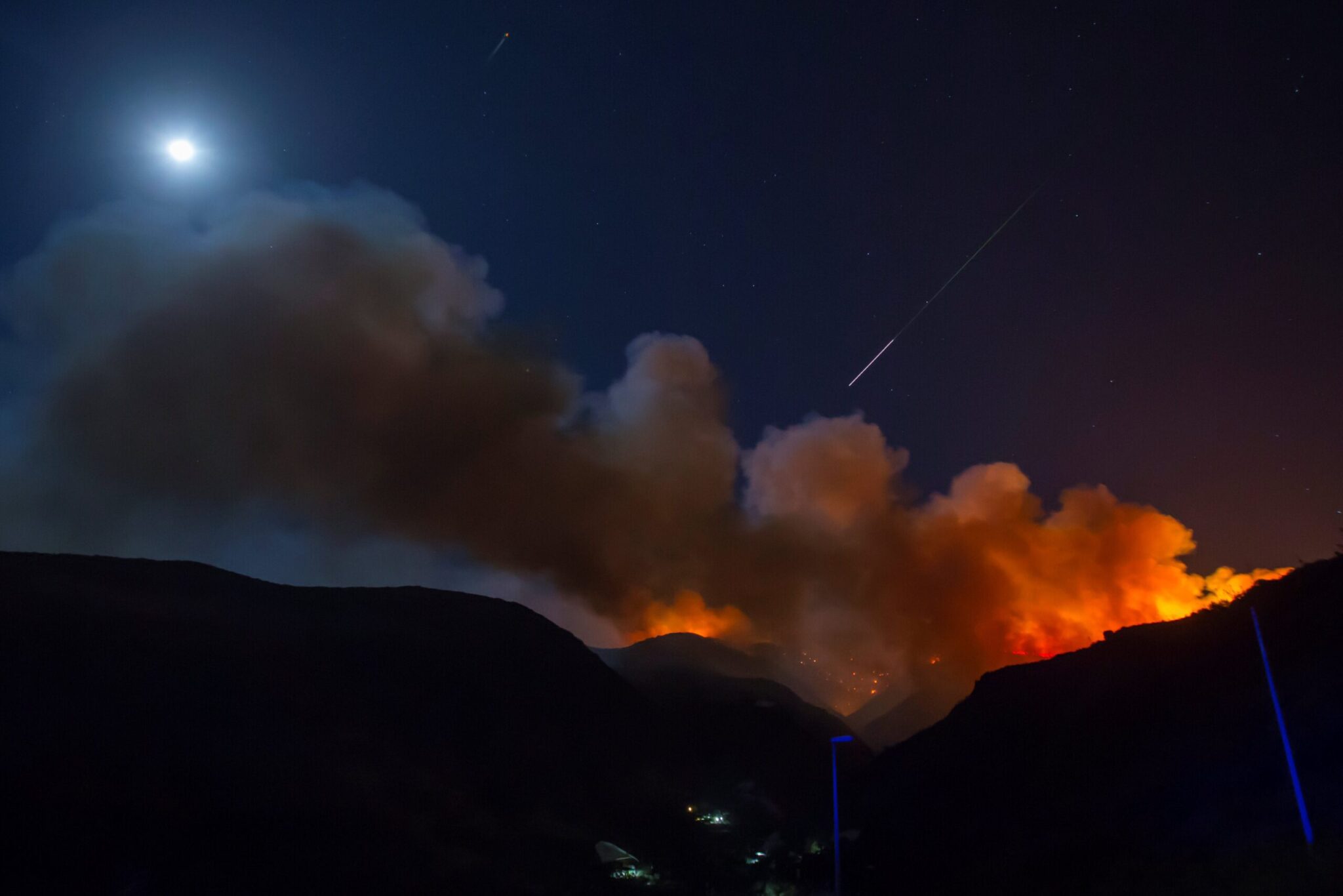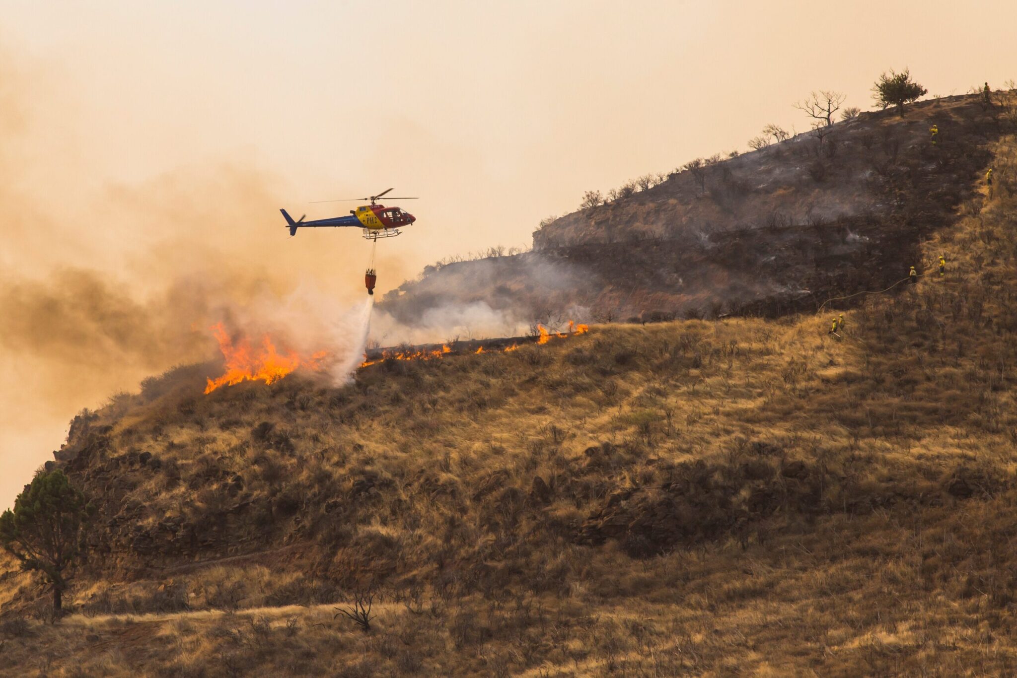 Πάνω από 6.000 πυροσβέστες και 11 εναέρια μέσα επιχειρούν για την κατάσβεση της πυρκαγιάς, ενώ πάνω από 10 οδικές αρτηρίες στο νησί έχουν κλείσει.