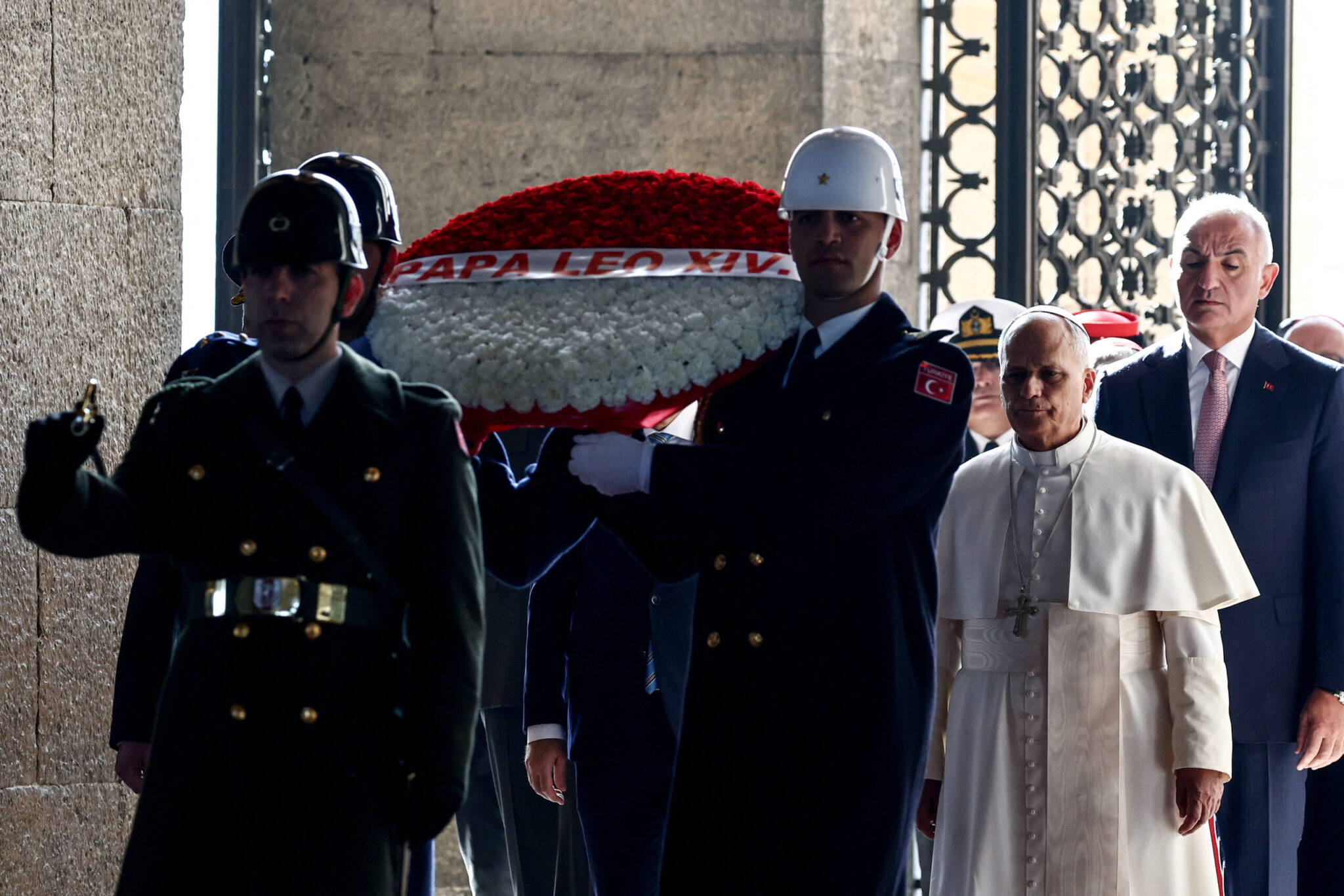 Η πρώτη επίσκεψη του Πάπα Λέοντα ΙΔ’ κατά την άφιξή του στην Τουρκία το πρωί της Πέμπτης ήταν στο Μαυσωλείο του Μουσταφά Κεμάλ Ατατούρκ, όπου υπέγραψε το Βιβλίο Τιμής.