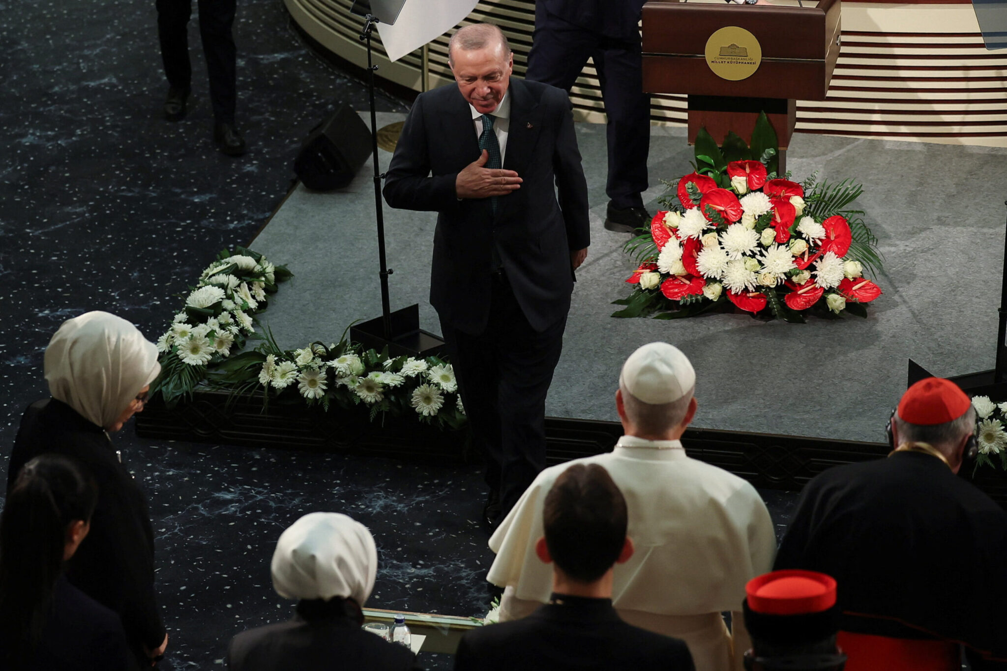 Ο Τούρκος πρόεδρος Ταγίπ Ερντογάν από την πλευρά του εξήρε τη στάση του Πάπα Λέοντα στο παλαιστινιακό ζήτημα μετά τη συνάντησή τους στην Άγκυρα την Πέμπτη και εξέφρασε την ελπίδα ότι η πρώτη του επίσκεψη στο εξωτερικό και συγκεκριμένα στην Τουρκία, ως καθολικός ηγέτης, θα ωφελήσει την ανθρωπότητα σε μια περίοδο έντασης και αβεβαιότητας.