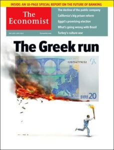 Τα χρόνια της κρίσης, η Ελλάδα πολλές φορές αποτέλεσε πρώτο θέμα σε δεκάδες εξώφυλλα περιοδικών του εξωτερικού. Από το 2010 που ξέσπασε η κρίση ο βρετανικός Economist φιλοξένησε πολλές φορές το θέμα της Ελλάδας στο εξώφυλλο.