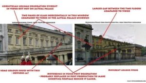 Η ισχυρότερη απόδειξη ότι έχουμε να κάνουμε με μοντάζ, δημοσιεύθηκε στην ιστοσελίδα Jonrosling.com, η οποία αναλύοντας τα καρέ του βίντεο διαπίστωσε ότι υπάρχουν διαφορές ανάμεσα στο κτίριο που απεικονίζεται στο βίντεο και το πραγματικό παλάτι.