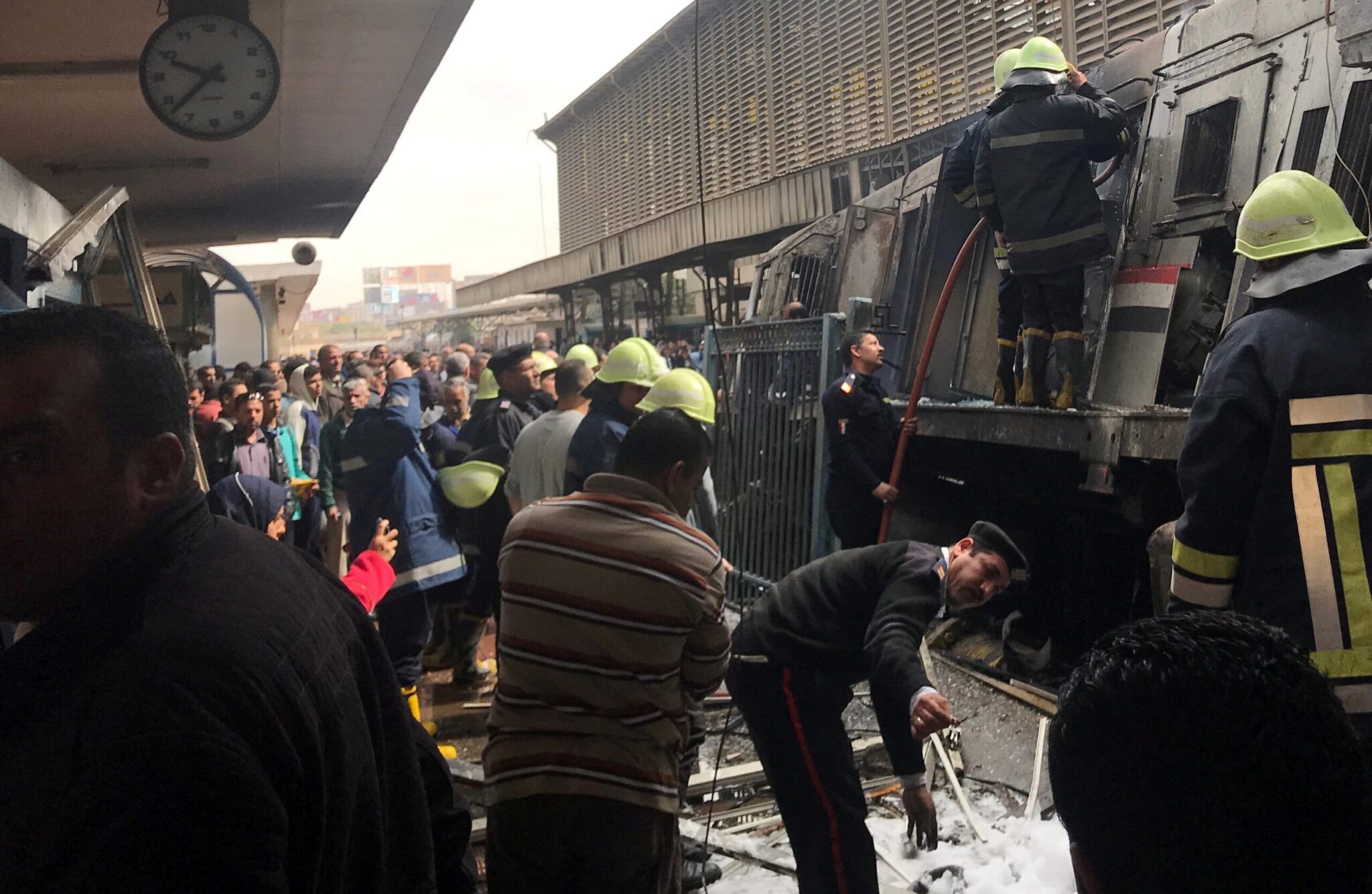 Φωτογραφίες που αναρτήθηκαν στα μέσα κοινωνικής δικτύωσης δείχνουν σύννεφα καπνού να βγαίνουν από το κτίριο του σιδηροδρομικού σταθμού στο κέντρο του Καΐρου.
