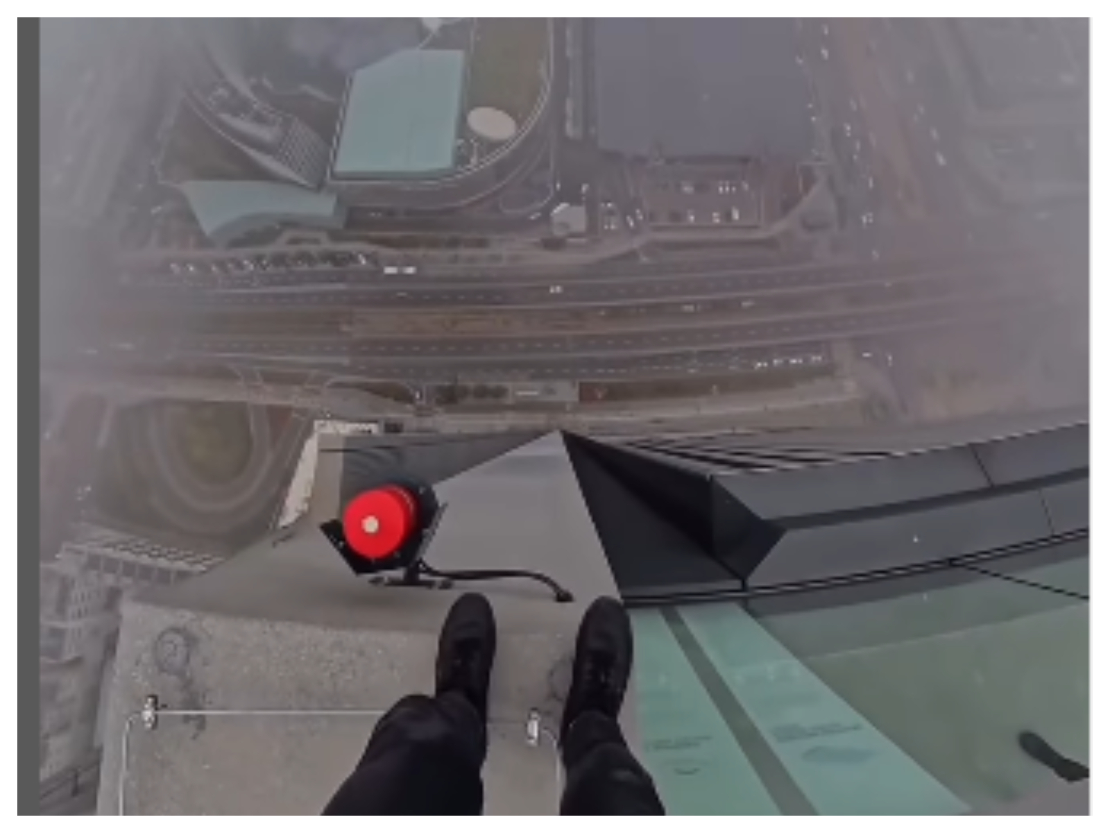 Το άλμα πραγματοποίησε ο Πολωνός αλεξιπτωτιστής Άντριαν Μπαρτέσκι, γνωστός ως e.xtremalny, λίγο μετά το άνοιγμα του παρατηρητηρίου του πύργου. Με την πτώση του από τα 230 μέτρα, ο Πολωνός αλεξιπτωτιστής εκτέλεσε το πρώτο καταγεγραμμένο άλμα από την κορυφή του εν λόγω πύργου.