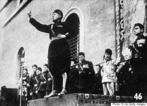 Ο Μπενίτο Μουσολίνι διοίκησε την Ιταλία από το 1922 έως το 1943 υπό δικτατορικό καθεστώς, μετατρέποντάς τη σε φασιστική πολιτεία. Με τη βοήθεια των Μελανοχιτώνων τροποποίησε το εκλογικό σύστημα έτσι ώστε το 1925 ήταν σε θέση να αναλάβει δικτατορικές εξουσίες και να διαλύσει όλα τα άλλα πολιτικά κόμματα και τα μη φασιστικά συνδικάτα. Ο Μουσολίνι ήταν το αγαπημένο παιδί του αμερικανικού Τύπου, που εμφανιζόταν σε τουλάχιστον 150 άρθρα από το 1.925 έως το 1.932, τα περισσότερα από τα οποία ήταν γραμμένα σε ουδέτερο, ή θετικό τόνο.