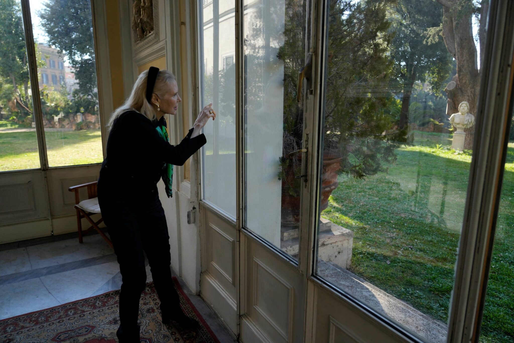 Η γεννημένη στο Τέξας πριγκίπισσα Rita Boncompagni Ludovisi, γεννημένη ως Rita Jenrette Carpenter και τελευταία σύζυγος του αείμνηστου πρίγκιπα Nicolo Boncompagni Ludovisi, εγκαταλείπει την κατοικία της, The Casino dell’Aurora, γνωστή και ως Villa Ludovisi, κατά την εκτέλεση μιας εντολής έξωσης, στη Ρώμη, την Πέμπτη. , 20 Απριλίου 2023. Η βίλα περιέχει τη μοναδική γνωστή οροφή ζωγραφισμένη από τον Καραβάτζιο και η πριγκίπισσα Λουντοβίζι αντιμετωπίζει δικαστική απόφαση έξωσης, στο τελευταίο κεφάλαιο μιας κληρονομικής διαμάχης με τους κληρονόμους μιας από τις αριστοκρατικές οικογένειες της Ρώμης. (AP Photo/Andrew Medichini)via Associated Press