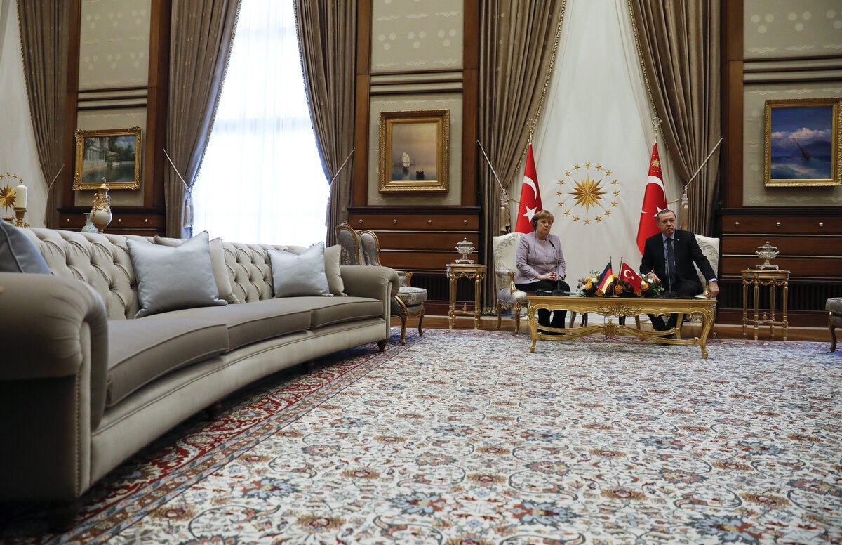 Η ατμόσφαιρα συνάντηση ήταν τεταμένη, μάλιστα ο Ρετζέπ Ταγίπ Ερντογάν διαφώνησεμε την χρήση του όρου «ισλαμιστική τρομοκρατία» για την περιγραφή των επιθέσεων που διαπράττουν τζιχαντιστικές οργανώσεις και επέπληξε την κ. Μέρκελ όταν τον χρησιμοποίησε στη διάρκεια της κοινής συνέντευξης τύπου των δύο ηγετών στην Άγκυρα.