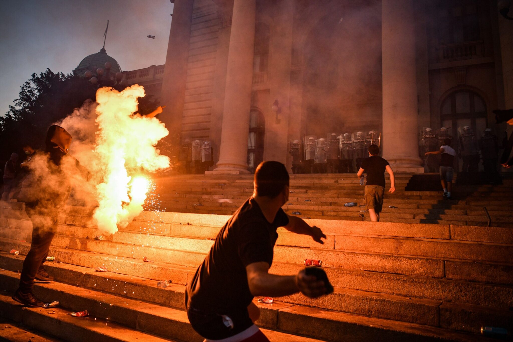 Ισχυρές δυνάμεις της αστυνομίας διέλυσαν την συγκέντρωση που διοργάνωσε η αντιπολίτευση μπροστά από την βουλή της Σερβίας. Τα επεισόδια ξεκίνησαν όταν ομάδα διαδηλωτών αφαίρεσε τα μεταλλικά κιγκλιδώματα που περιβάλουν το κτήριο της βουλής και κατευθύνθηκαν προς την είσοδο πετώντας πέτρες και κροτίδες εναντίον των αστυνομικών.