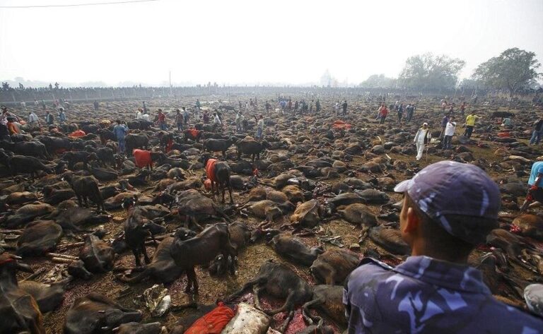 Περισσότερα από 250.000 ζώα παρατάχθηκαν για σφαγή, καθώς στο Νεπάλ ξεκίνησε διήμερη θρησκευτική γιορτή όπου βούβαλοι, πουλιά και κατσίκες θυσιάστηκαν για να κατευνάστεί η θεά Γκαντιμάι.