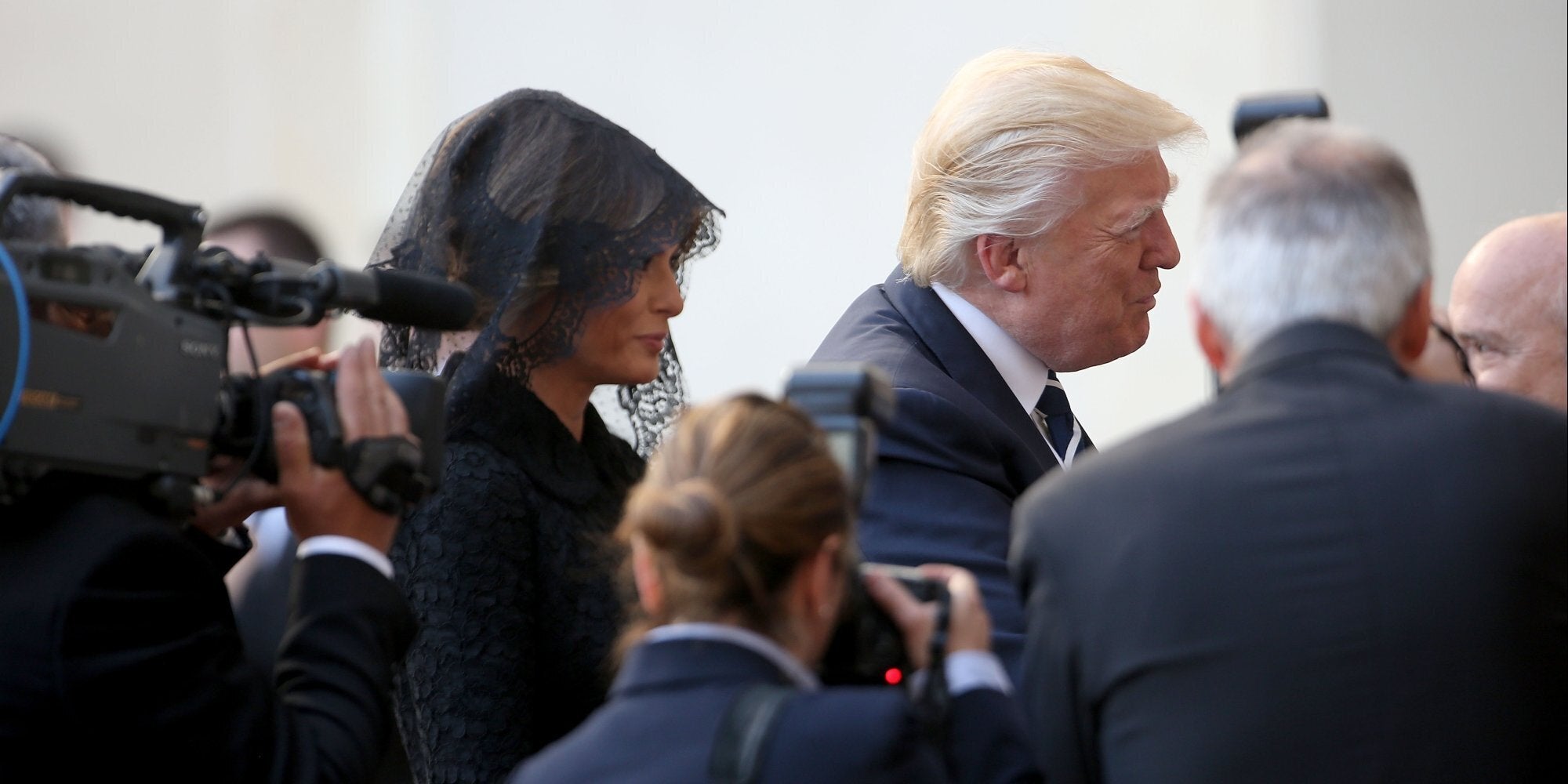 Μαζί με τον Τραμπ ήταν η σύζυγός του Μελάνια, η κόρη του Ιβάνκα, ο σύζυγός της Τζάρεντ Κούσνερ, αλλά και ο υπουργός Εξωτερικών των ΗΠΑ Ρεξ Τίλερσον.