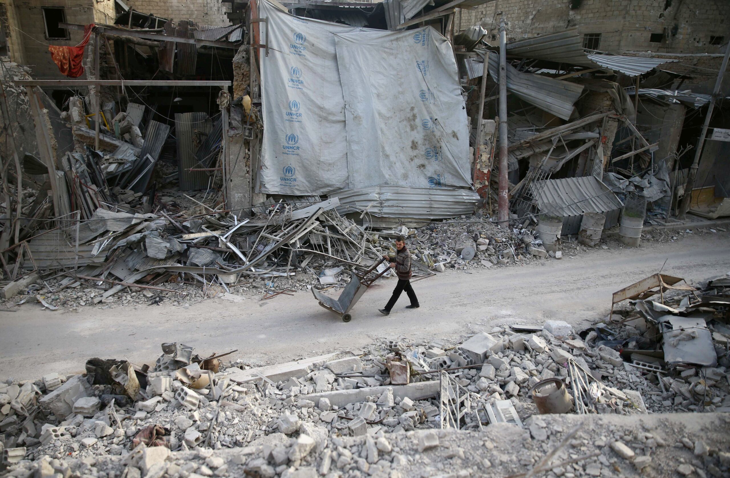 Το βράδυ της Δευτέρας, το κομβόι που μετέφερε ανθρωπιστική βοήθεια στον θύλακα συντόμευσε τη διανομή τροφίμων και φαρμάκων λόγω των βομβαρδισμών στον τομέα της Ντούμα, της μεγαλύτερης πόλης της Ανατολικής Γούτας.
