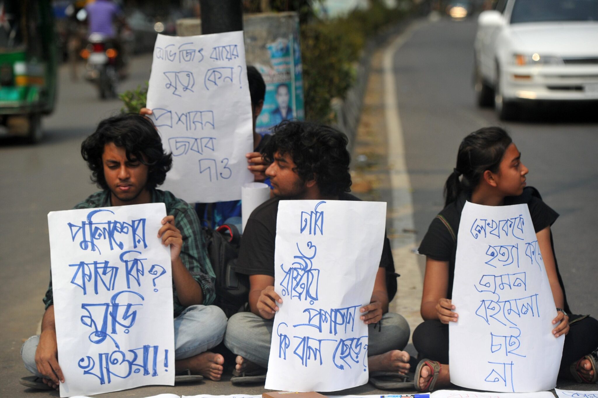 Εκατοντάδες Μπαγκλαντεσιανοί διαδηλώνουν κατά του φονταμενταλισμού στην Ντάκα. Κρατούν πυρσούς, σε ένδειξη πένθους και τιμής προς τον μπλόγκερ Αβιζίτ Ρόι που δολοφονήθηκε άγρια από φανατικούς ισλαμιστές.