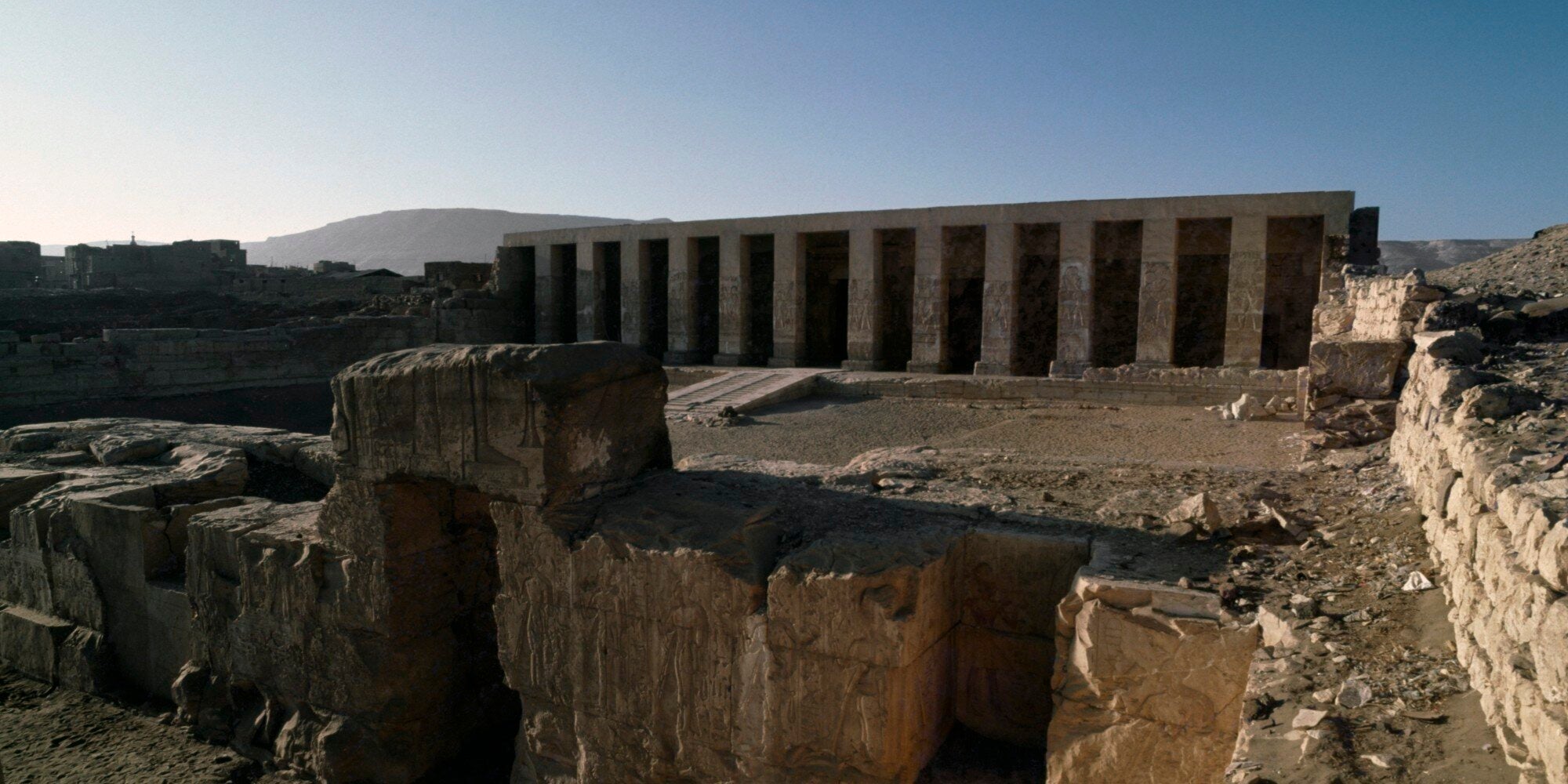 Η πόλη εντοπίστηκε 400 μέτρα μακριά από τον ναού του Φαραώ Σέτι Α’, μνημείο της περιόδου του Πρώτου Βασιλείου στον Νείλο .