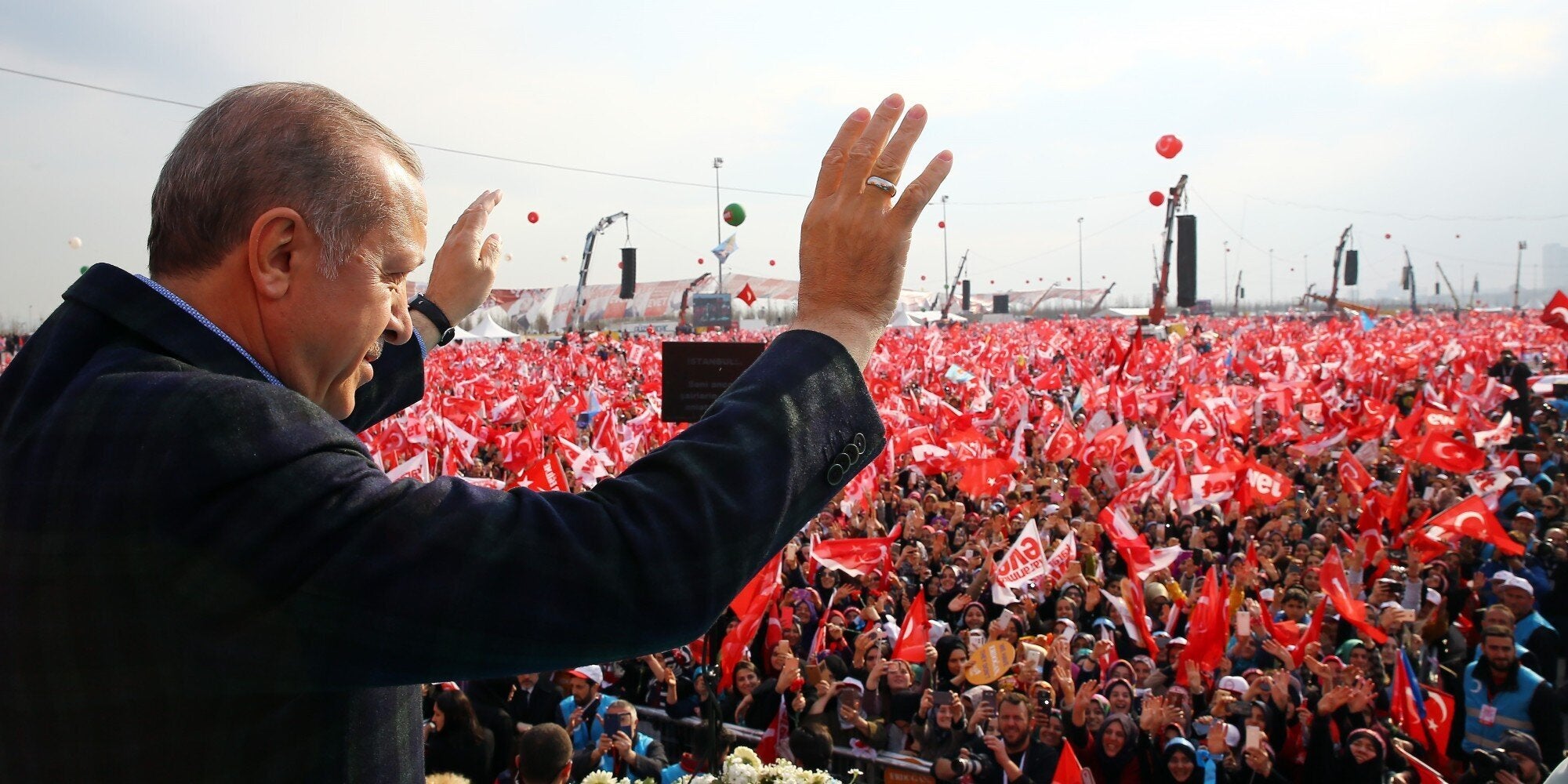 «Την 16η Απριλίου, θέλετε να πείτε “ναι” σε μια ισχυρή Τουρκία;» ρώτησε ο Τούρκος ηγέτης το πλήθος, το οποίο σύσσωμο απάντησε «Ναι!».