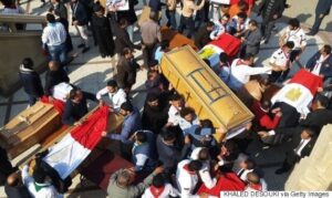 Εκατοντάδες άνθρωποι συγκεντρώθηκαν στην περιοχή Μάντινατ Νασρ οργισμένοι επειδή δεν τους επιτράπηκε να εισέλθουν στην εκκλησία, καθώς η είσοδος επιτρεπόταν μόνο με προσκλήσεις για τις οικογένειες των θυμάτων.