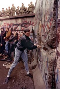 Το Τείχος έπεσε τη νύχτα της 9ης προς τη 10η Νοεμβρίου 1989 και ενώ η ΕΣΣΔ έφτανε στο τέλος της. Είχε προηγηθεί η απόφαση του Γενικού Γραμματέα του Κομμουνιστικού Κόμματος της Σοβιετικής Ένωσης, Μιχαήλ Γκορμπατσώφ, να επιστρέψει στις χώρες του Συμφώνου της Βαρσοβίας το δικαίωμα της αυτοδιάθεσης τόσο στην εσωτερική όσο και στη διεθνή πολιτική. Έτσι, η μία μετά την άλλη οι χώρες του Ανατολικού Μπλοκ άρχισαν να καταλύουν τα κομμουνιστικά καθεστώτα και να διεξάγουν εκλογές. Παράλληλα, οι κάτοικοι του Ανατολικού Βερολίνου άρχισαν να εντείνουν τις διαδηλώσεις τους για εκδημοκρατισμό και ελευθερία διακίνησης, ειδικά όταν ο ηγέτης της Λαοκρατικής Δημοκρατίας της Γερμανίας, Έριχ Χόνεκερ, αρνήθηκε να συμμετάσχει στις εξελίξεις που δρομολόγησε ο Γκορμπατσώφ.