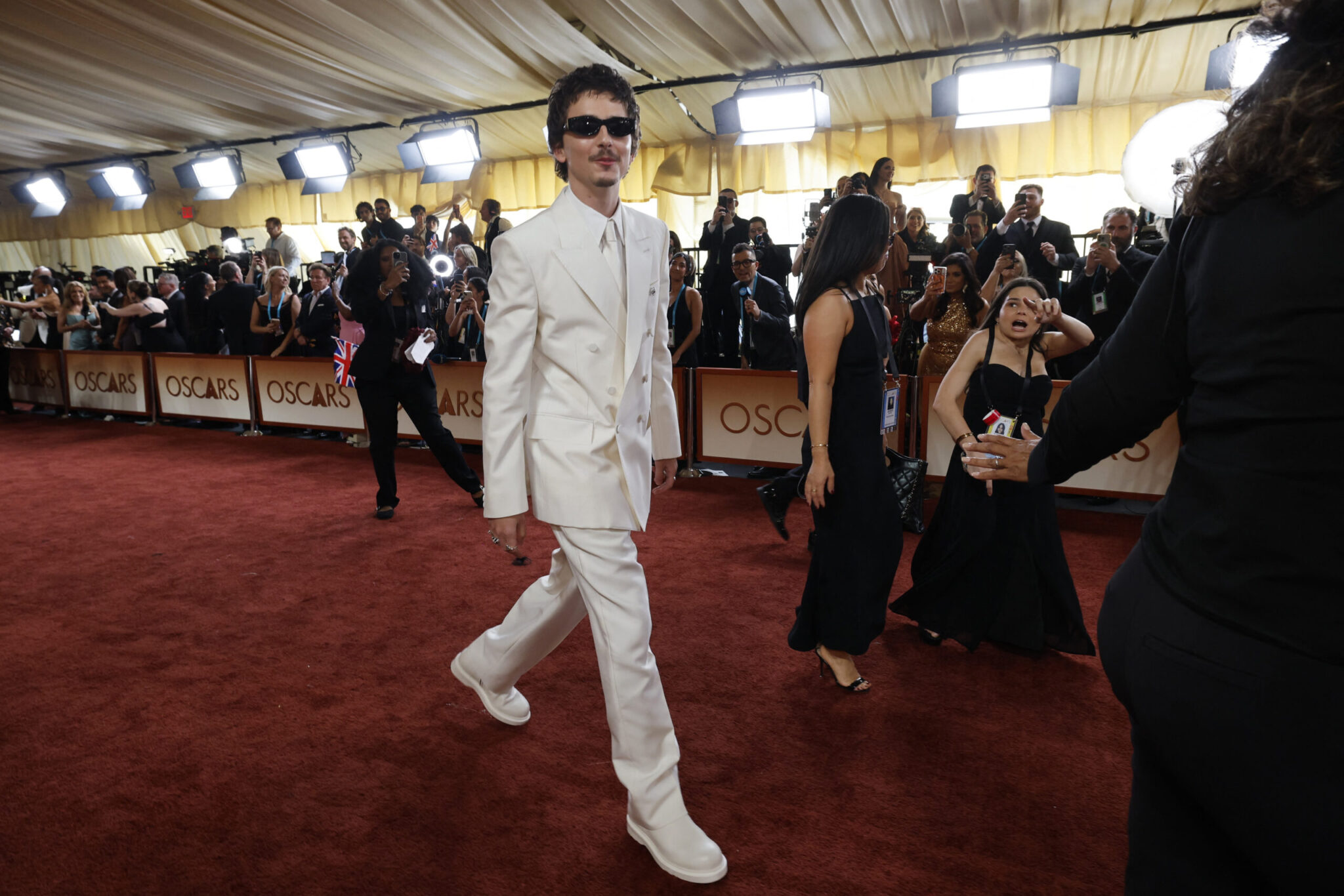 «Η ασφάλεια απόψε είναι πολύ αυστηρή. Υπάρχουν φόβοι για επιθέσεις από τις κοινότητες της όπερας και του μπαλέτου», είπε, με την κάμερα να εστιάζει αμέσως στον ηθοποιό. Ο Σαλαμέ χαμογέλασε αμήχανα δίπλα στη σύντροφό του, Κάιλι Τζένερ, σε μια στιγμή που πολλοί χρήστες στα social media χαρακτήρισαν εξαιρετικά άβολη.