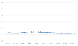 Πίνακας 1 Αμυντικός Προϋπολογισμός της Γερμανίας ως % του ΑΕΠ (2006-15) (Πηγή The World Bank)