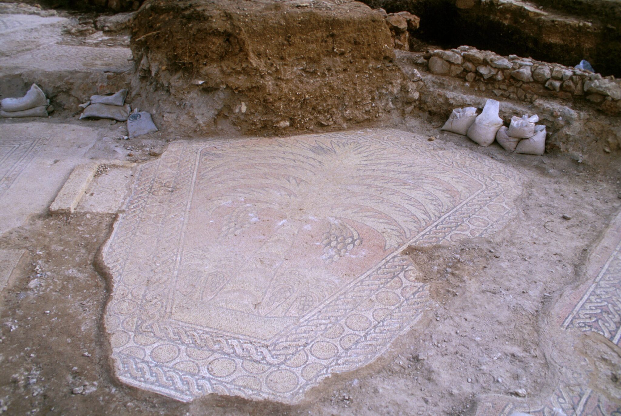 Σ΄ένα από τα πολύχρωμα ψηφιδωτά πατώματα απεικονίζονται τρία φοινικόδεντρα εκ των οποίων το ένα λυγίζει μπροστά στη Θεοτόκο για να της προσφέρει σκιά και φρούτα ενώ αυτή ξεκουράζεται. Πρόκειται για μια ιστορία που εμφανίζεται στο απόκρυφο ευαγγέλιο του Ψευδο- Ματθαίου η οποία επίσης συναντάται και στο Κοράνι.