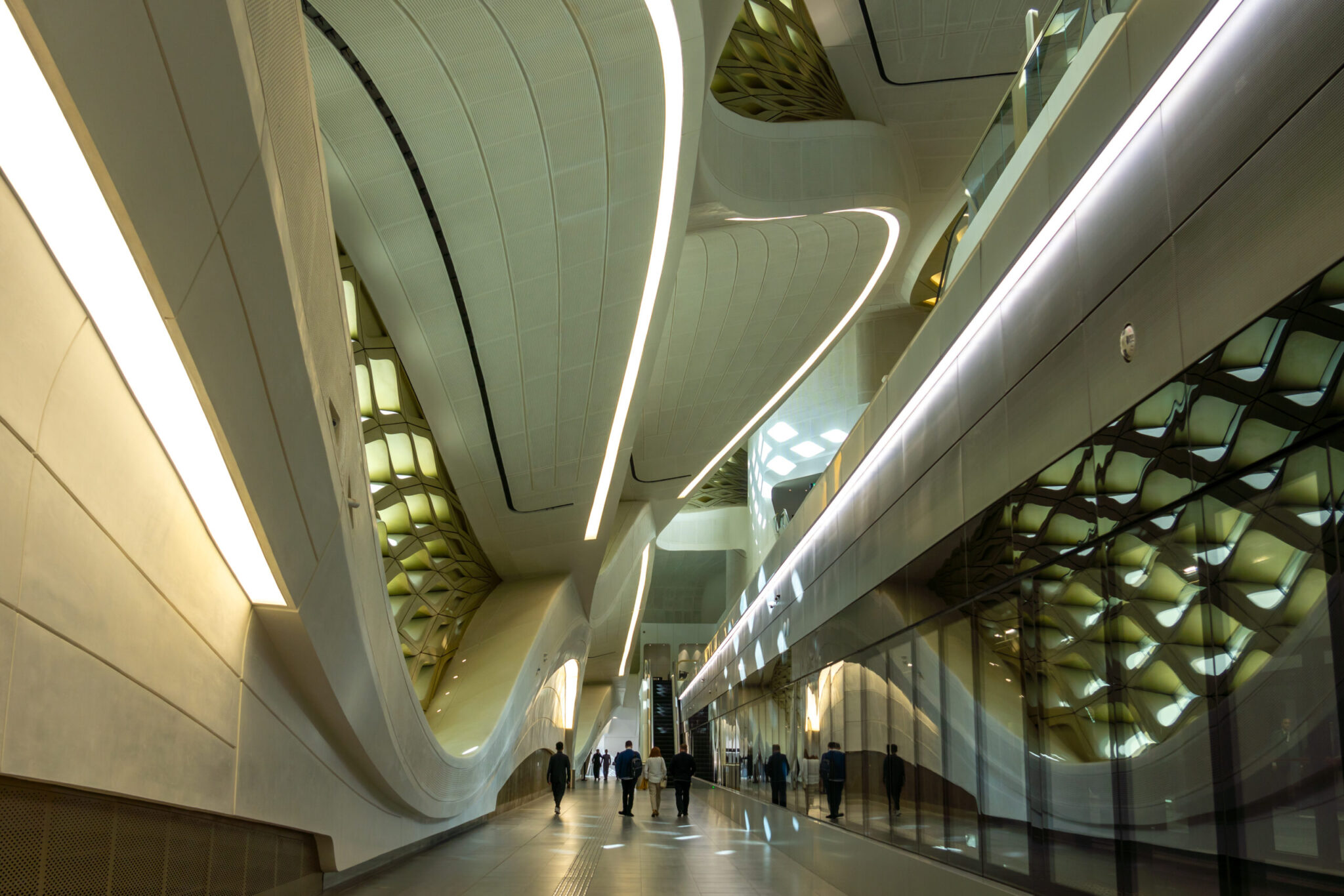 Στο εσωτερικό υπάρχουν καταστήματα, γκαλερί με έργα τέχνης, συμπεριλαμβανομένου ενός γλυπτού του Αμερικανού Alexander Calder, ακόμη κι ένας εσωτερικός κήποςενώ είναι ο πιο πολυσύχναστος σταθμός όπου χιλιάδες άνθρωποι φτάνου μόνο και μόνο για να δουν την κυματιστή πρόσοψή του εμπνευσμένη από μοτίβα ερήμου σε σχήμα ανέμου.