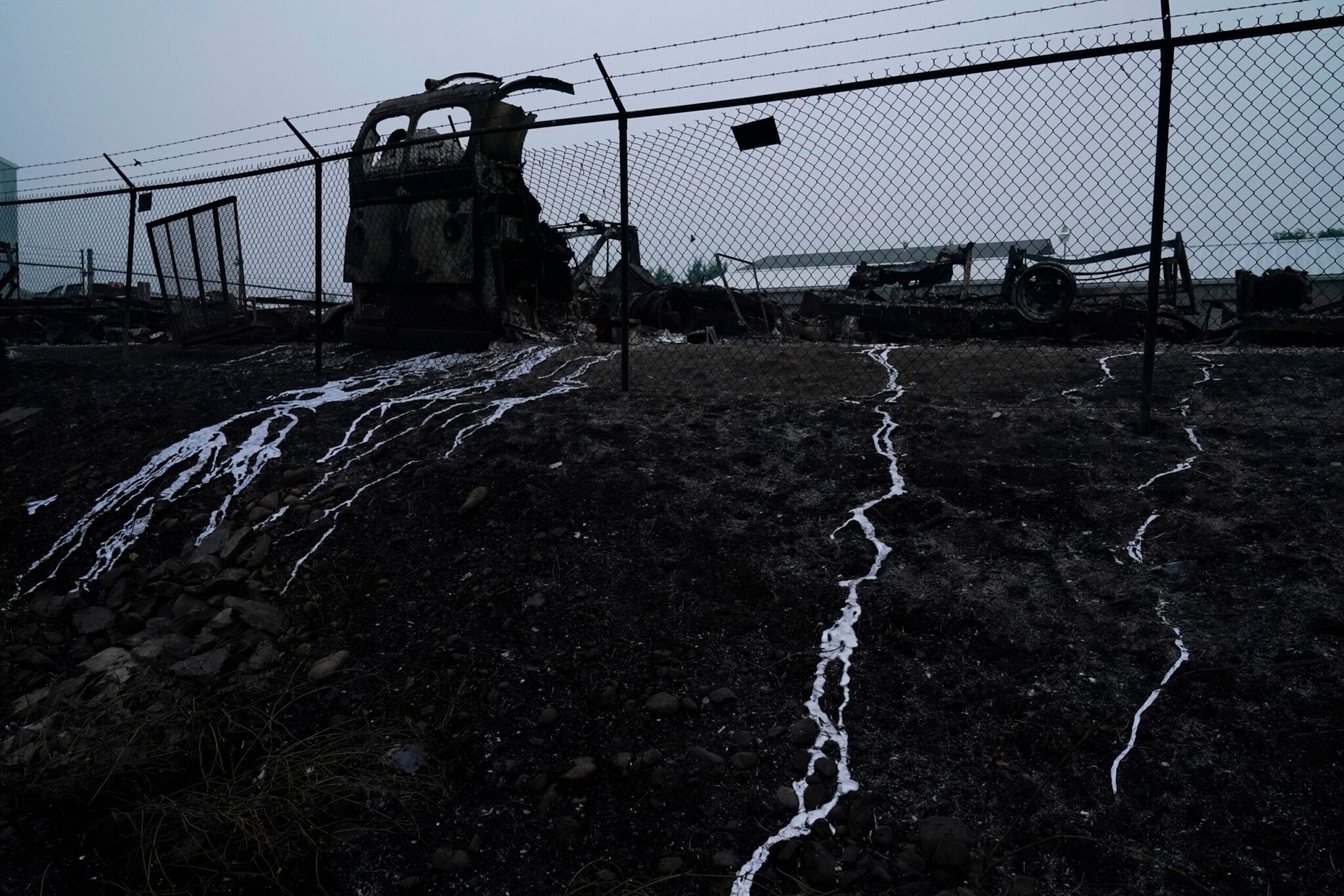 Εικόνες του Reuters από την ζώνη της φωτιάς δείχνει απανθρακωμένα οχήματα, ερείπια κτιρίων, όπως και αποκαΐδια κατά μήκος του αυτοκινητόδρομου Route 99 που συνδέει την Άσλαντ με το Μέντφορντ.