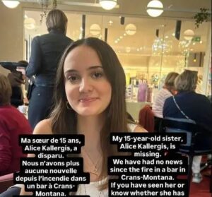 Μια Ελληνίδα 15 ετών, μόνιμος κάτοικος Ελβετίας, φέρεται να συγκαταλέγεται στη λίστα των δεκάδων αγνοουμένων μετά την φονική έκρηξη και πυρκαγιά σε μπαρ του γνωστού χειμερινού θερέτρου Κραν Μοντανά της Ελβετίας.