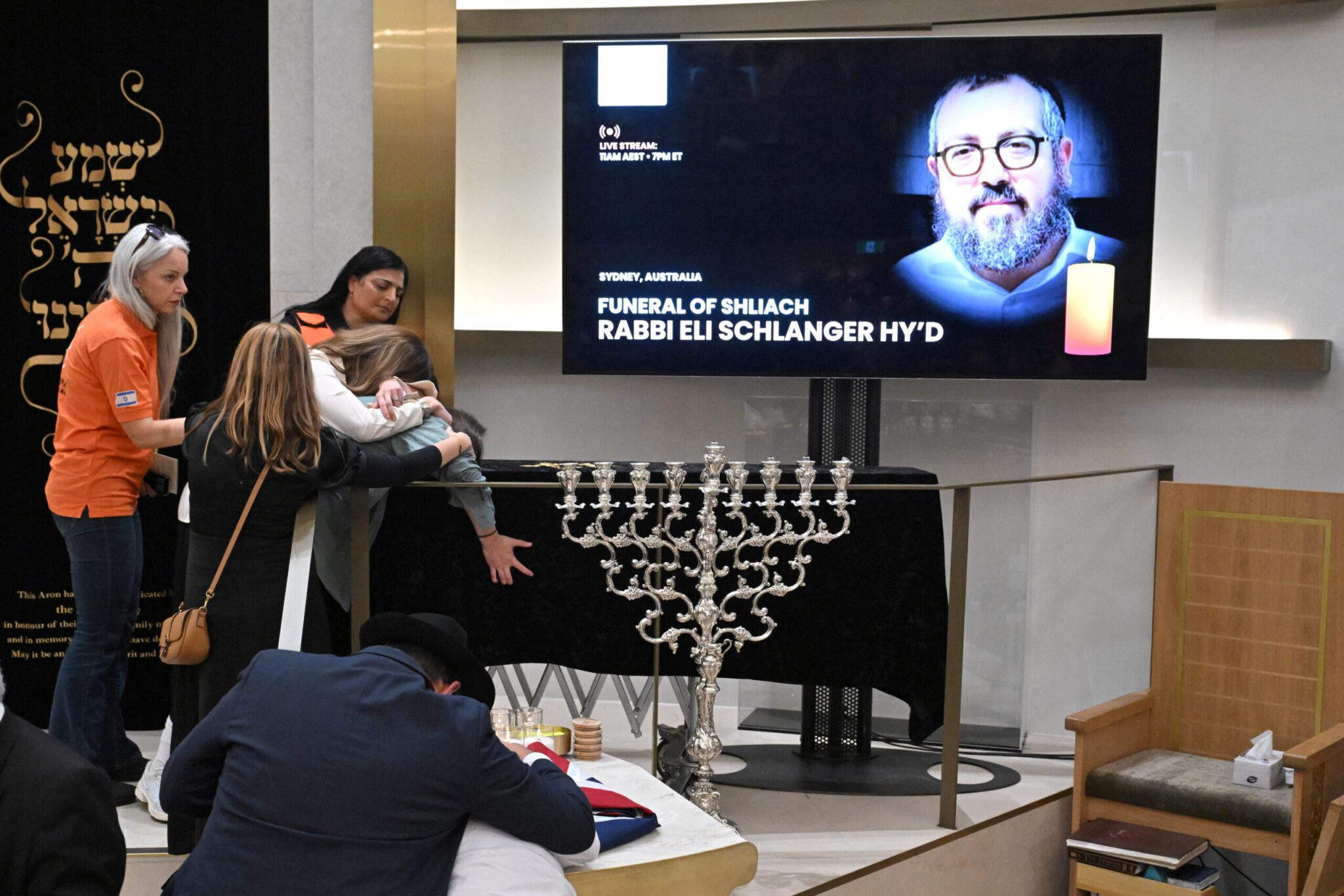 Η κηδεία του Ραβίνου Ελάι Σλάνγκερ, βοηθού ραβίνου στη Συναγωγή Chabad Bondi και πατέρα πέντε παιδιών, πραγματοποιήθηκε σήμερα. Ήταν γνωστός για το έργο του για την εβραϊκή κοινότητα του Σίδνεϊ μέσω του Chabad, ενός παγκόσμιου οργανισμού που προωθεί την εβραϊκή ταυτότητα.