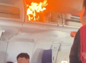 Fire breaks out in the overhead luggage bin on board Air China flight CA139 while flying between Hangzhou and Seoul.