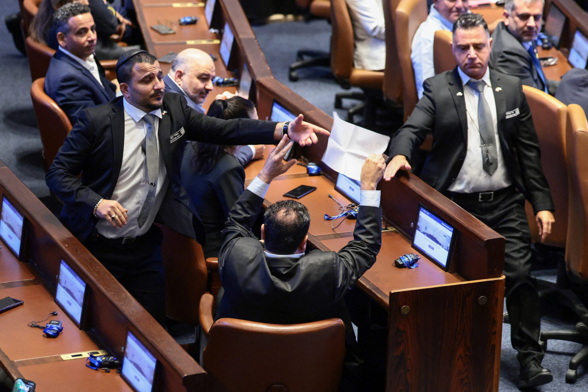 Σημειώνεται πως κάποια στιγμή έλαβε χώρα ένταση με βουλευτές στην αίθουσα, με δύο μέλη της Κνεσέτ να απομακρύνονται με συνοπτικές διαδικασίες αφού σήκωσαν επιγραφές και τον Αμερικανό πρόεδρο να σχολιάζει «πολύ αποτελεσματικό».
