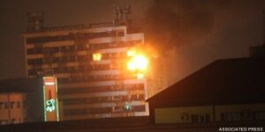 Ρεπόρτερ του Associated Press, είδε το πολυόροφο κτίριο του εκδοτικού οίκου να τυλίγεται στις φλόγες και άκουσε τον ήχο βαρέων όπλων τα ξημερώματα.