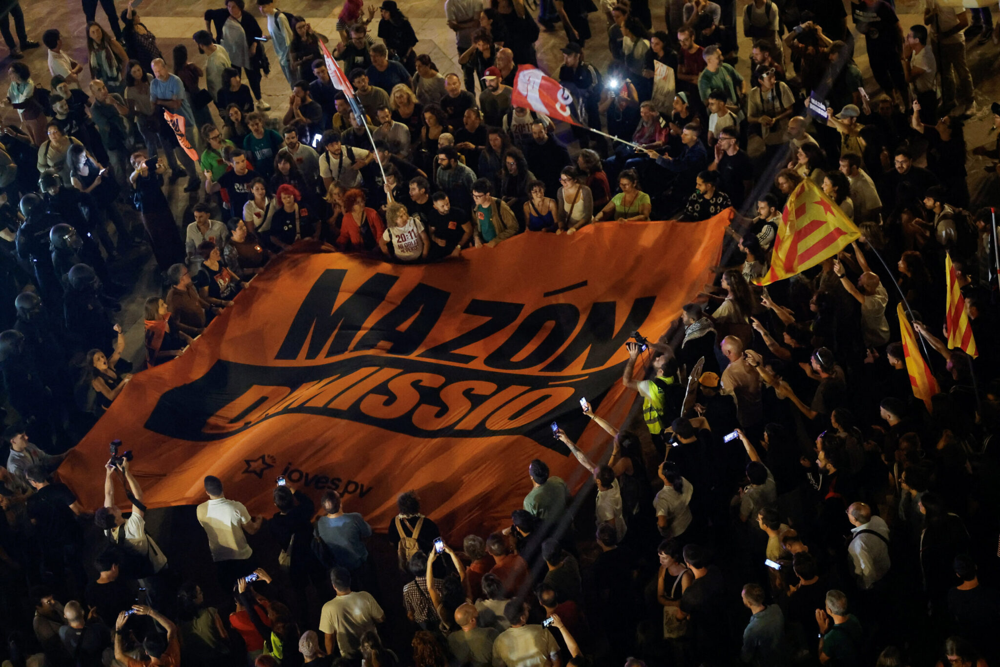 Οι διαδηλωτές, πολλοί εκ των οποίων κρατούσαν φωτογραφίες των θυμάτων, ζήτησαν την παραίτηση του περιφερειακού ηγέτη, Κάρλος Μαθόν, κατηγορώντας τον για την καθυστερημένη αντίδραση σε μία από τις πιο φονικές φυσικές καταστροφές στην Ευρώπη των τελευταίων δεκαετιών. «Ο κόσμος είναι ακόμα πολύ θυμωμένος», δήλωσε η Ρόζα Θέρος, δημόσια υπάλληλος 42 ετών, που συμμετείχε στη διαδήλωση μαζί με τον σύζυγό της και τις δύο μικρές κόρες τους.