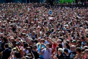 Ακολούθησαν χειροκροτήματα χωρίς χαρά και η συλλογική κραυγή «δεν φοβόμαστε» υψώθηκε από το πλήθος.