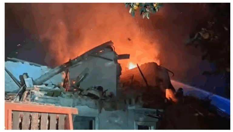Εξαιτίας έκρηξης που προκάλεσε μια γυναίκα 60 ετών, το κτήριο κατέρρευσε, καταπλακώνοντας τους τρεις καραμπινιέρους. Τραυματίσθηκαν άλλοι 13 αστυνομικοί και καραμπινιέροι, οι οποίοι μεταφέρθηκαν στο νοσοκομείο. Η ζωή τους, σύμφωνα με τους γιατρούς, δεν διατρέχει κίνδυνο.