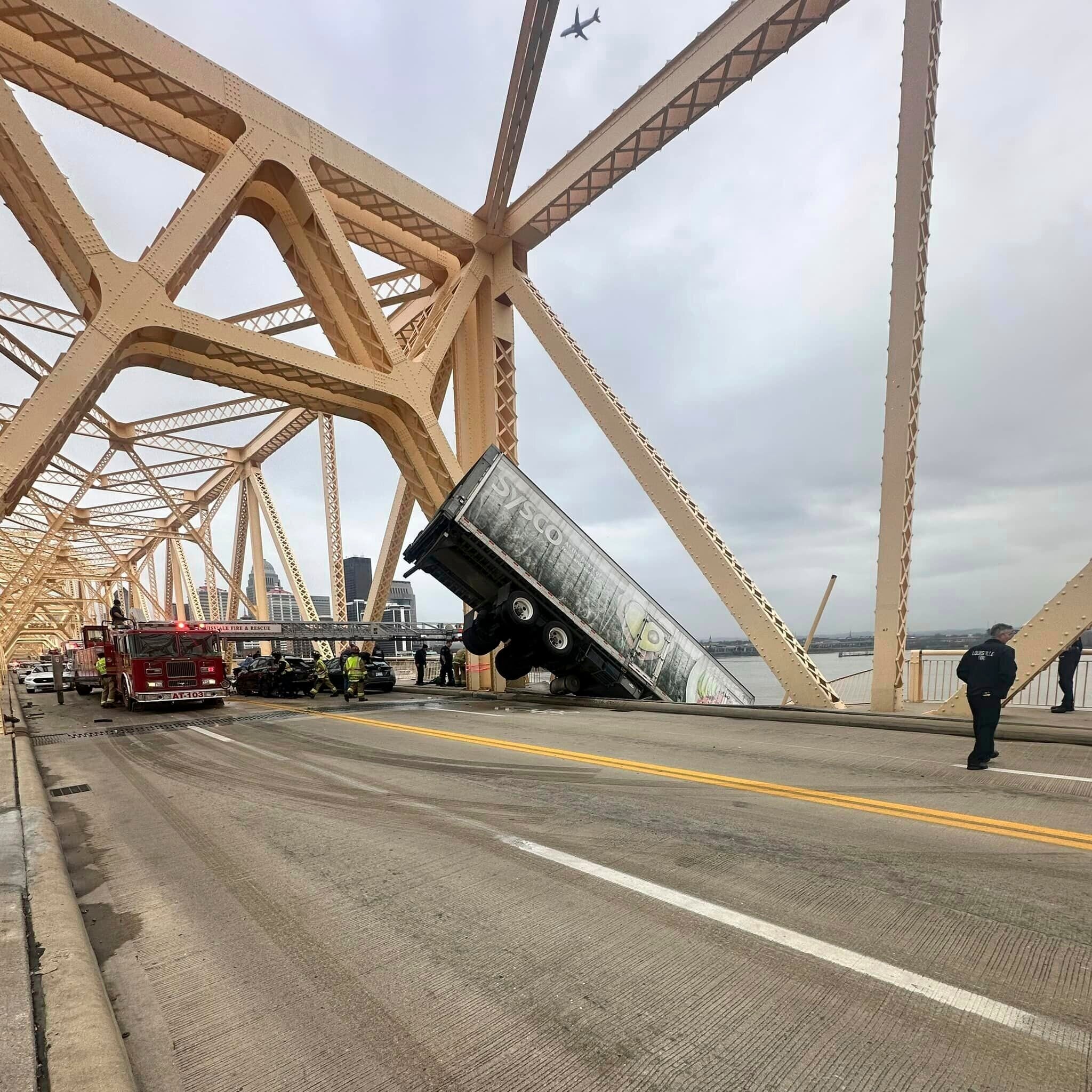 Το βίντεο (παρακάτω) από την κάμερα του φορτηγού δείχνει ένα μικρότερο αυτοκίνητο να έρχεται από το αντίθετο ρεύμα προκαλώντας μετωπική σύγκρουση, ενώ ακουλουθεί πανδαιμόνιο στη γέφυρα του Λούισβιλ, που ενώνει την πρωτεύουσα του Κεντάκι με την Ιντιάνα.