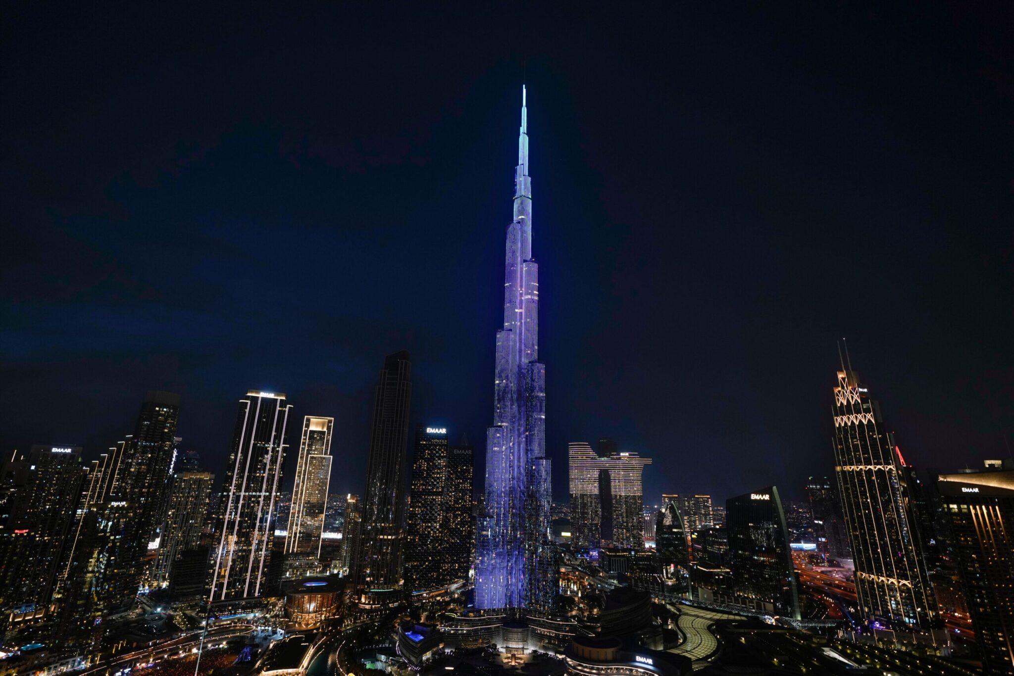 Φώτα φωτίζουν το Burj Khalifa, το ψηλότερο κτίριο του κόσμου, πριν από τον εορτασμό της παραμονής της Πρωτοχρονιάς, στο Ντουμπάι, Ηνωμένα Αραβικά Εμιράτα, Τρίτη 31 Δεκεμβρίου 2024. (AP Photo/Altaf Qadri)via Associated Press